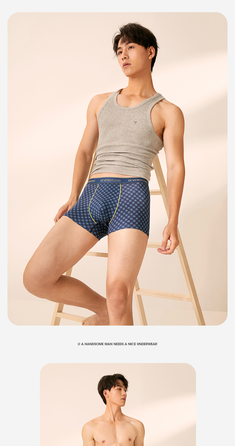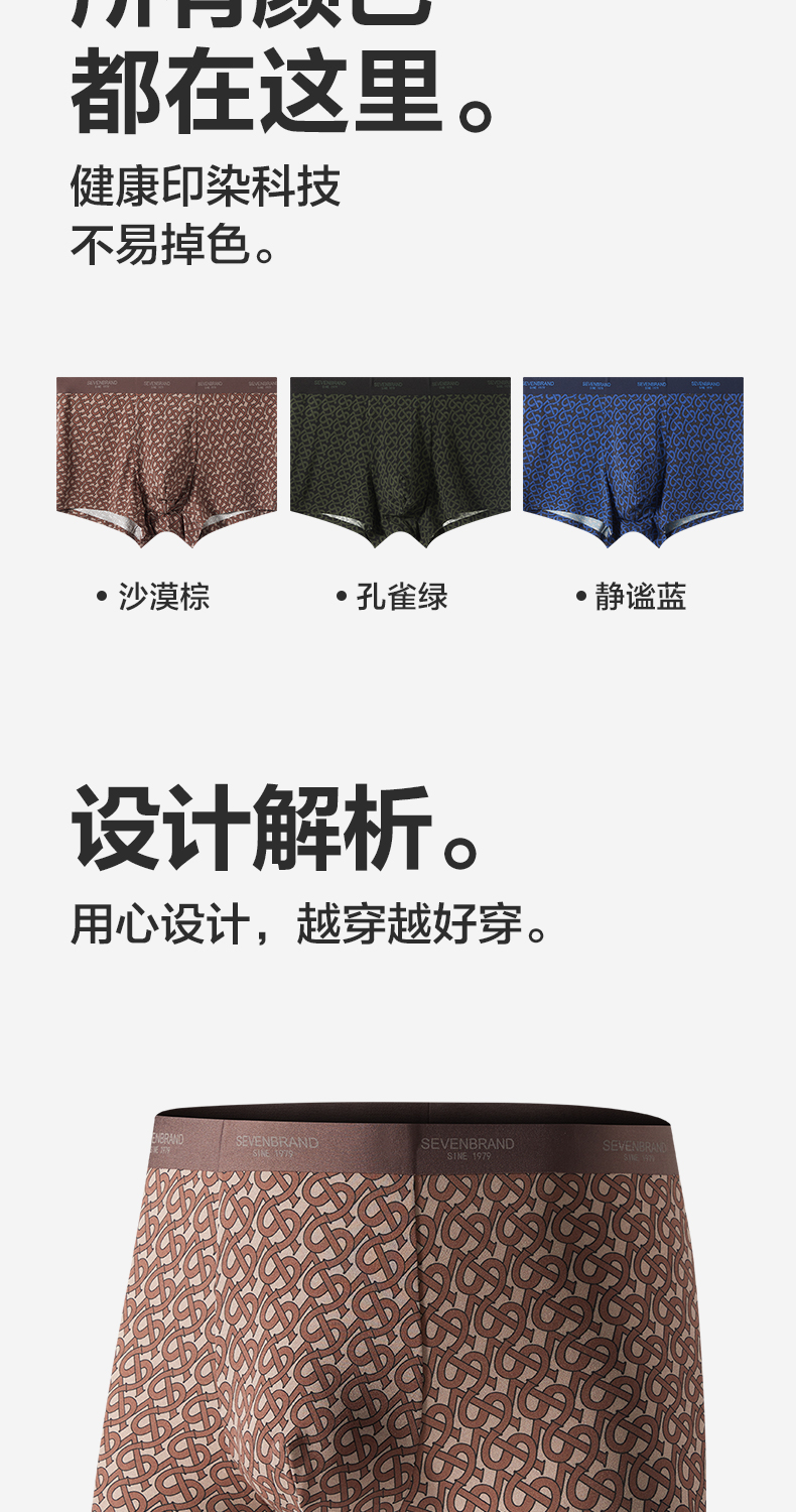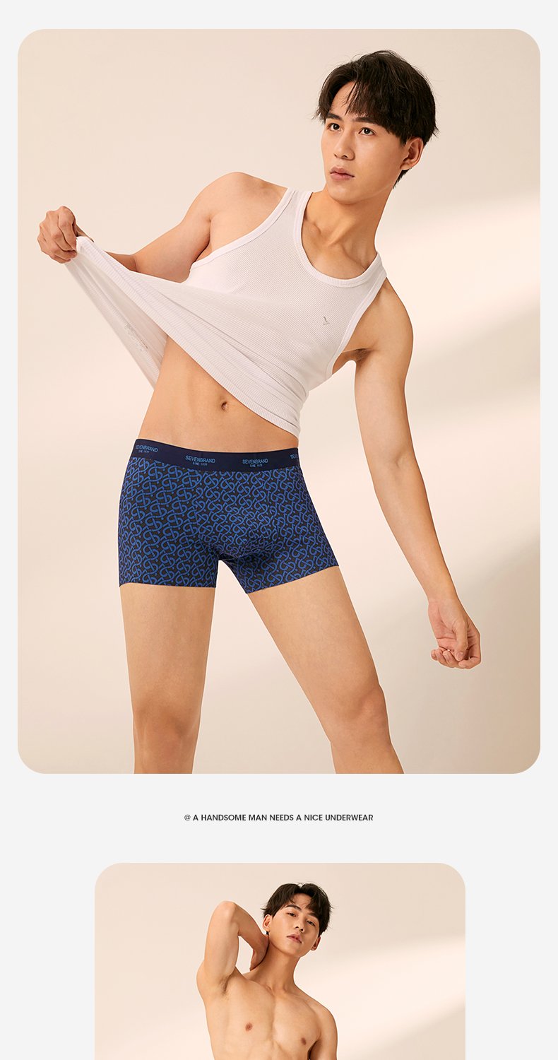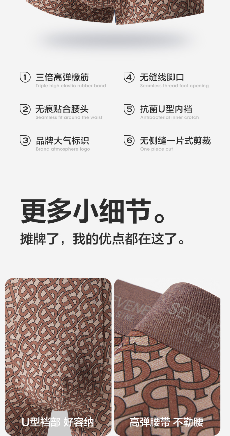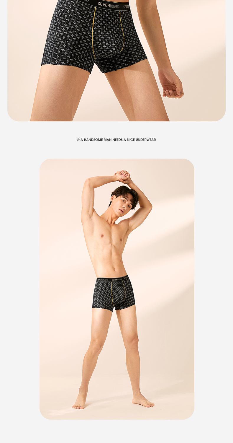 【单条装】柒牌男士内裤满印5A抑菌平角短裤高级感内衣裤吸湿排汗细滑内裤男 125F70110