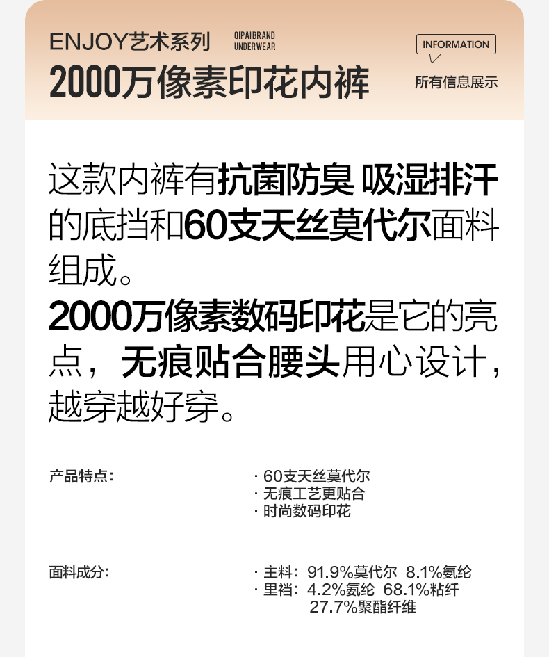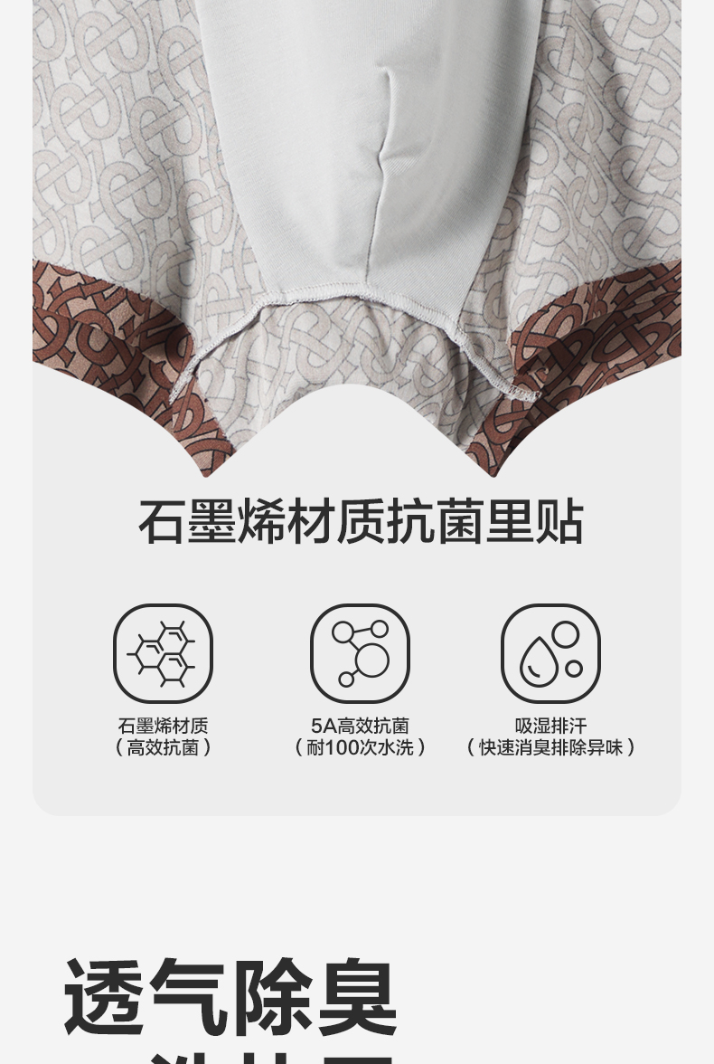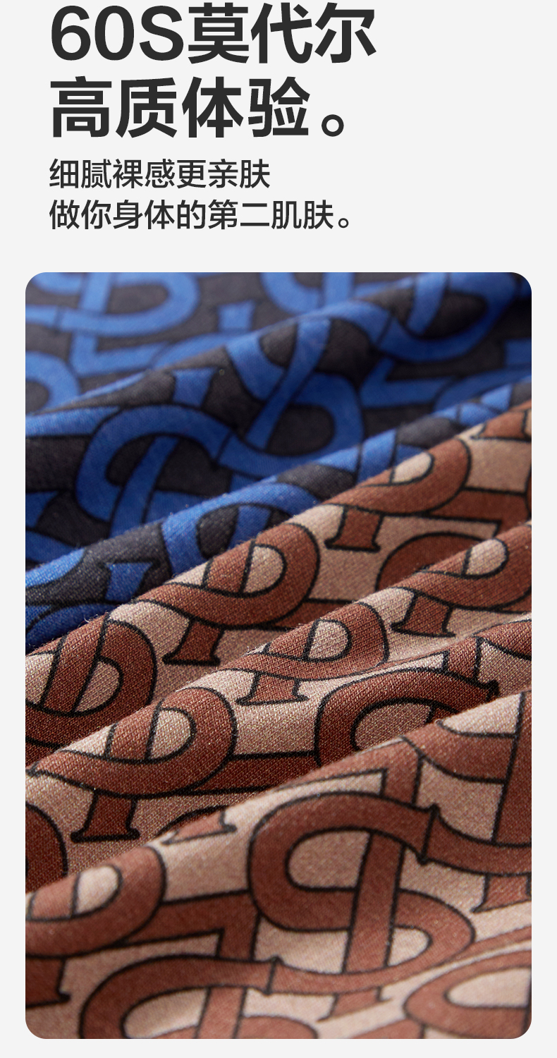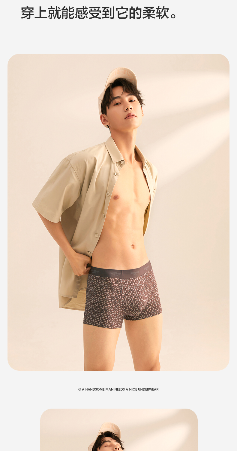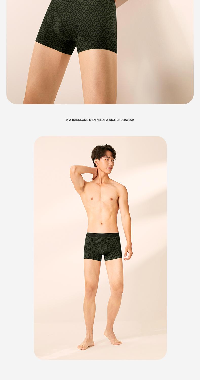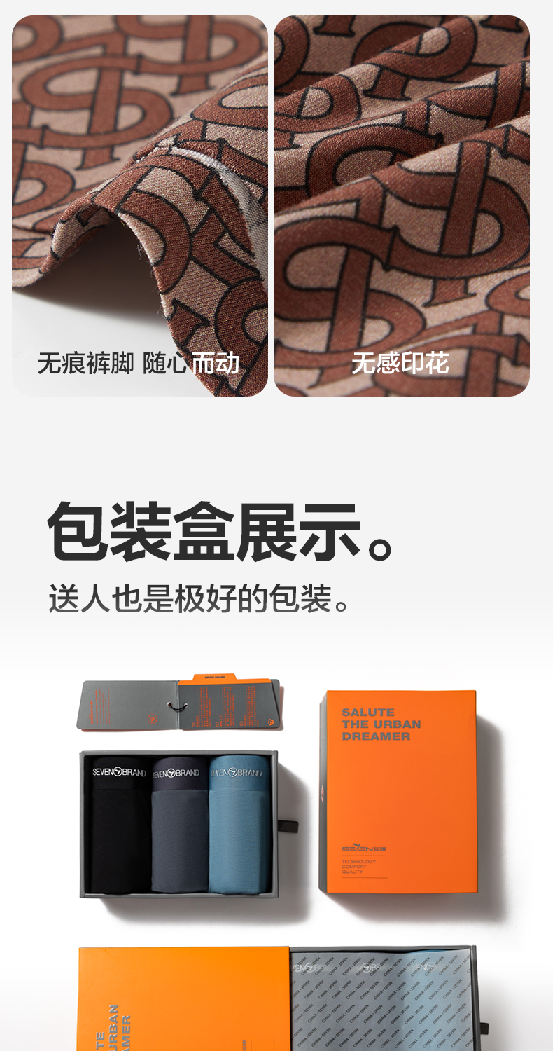 【单条装】柒牌男士内裤满印5A抑菌平角短裤高级感内衣裤吸湿排汗细滑内裤男 125F70110