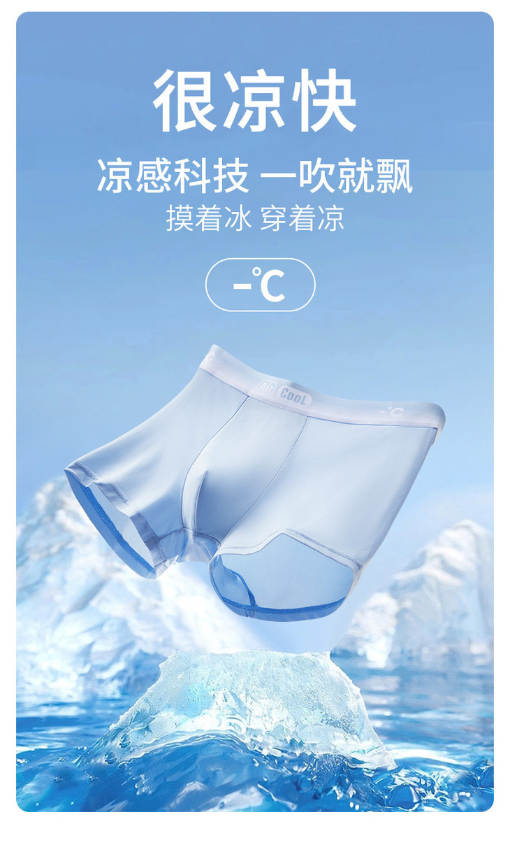 3条装!【凉感科技 一吹就飘】夏季新款男士冰丝无痕内裤 超薄透气四角纯色抗箘速干面膜平角裤
