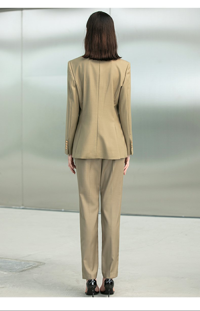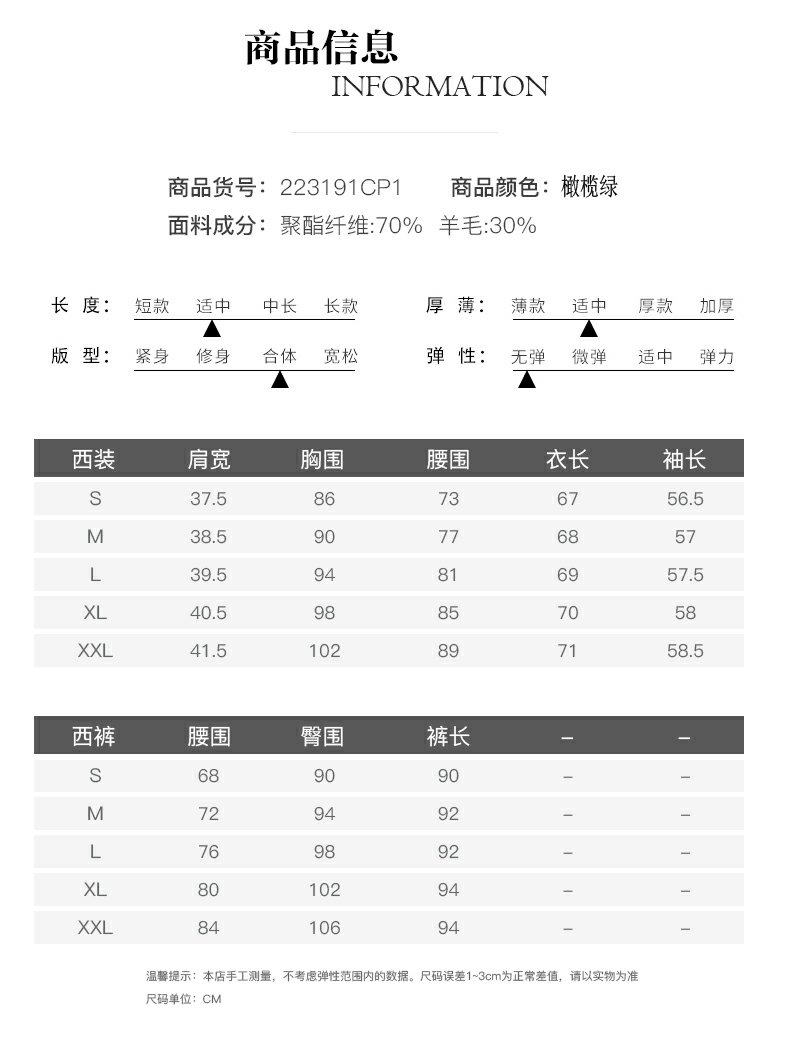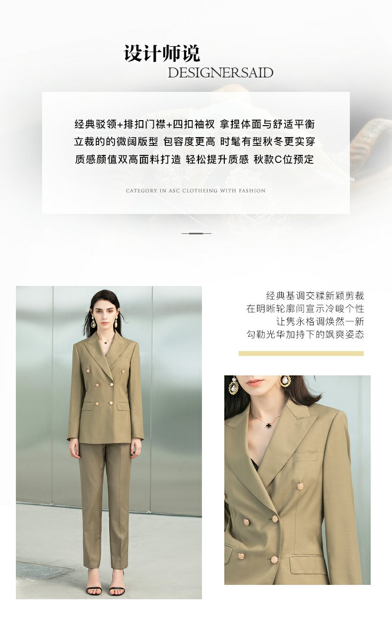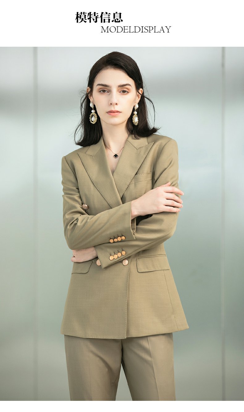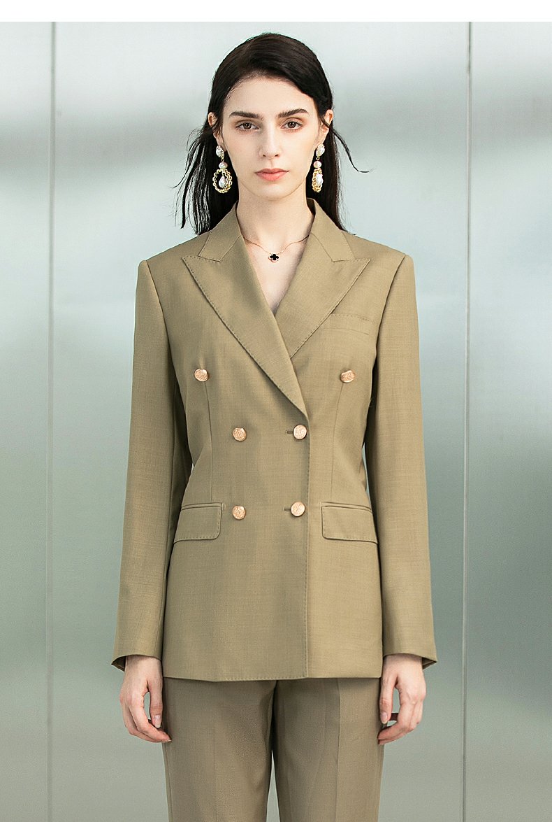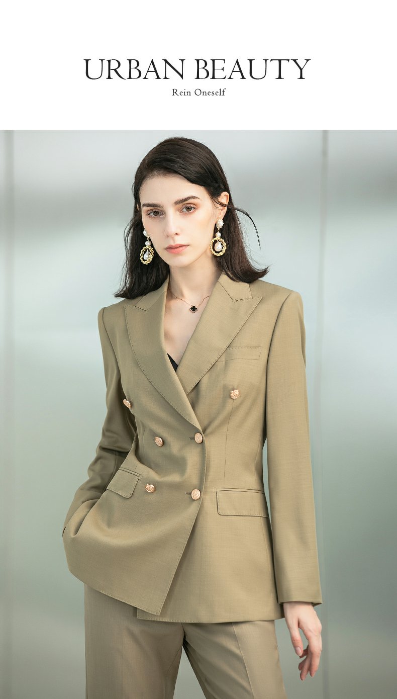 IWY/秋冬时尚西装西服套装女正装气质双排扣橄榄绿高端223191CP1