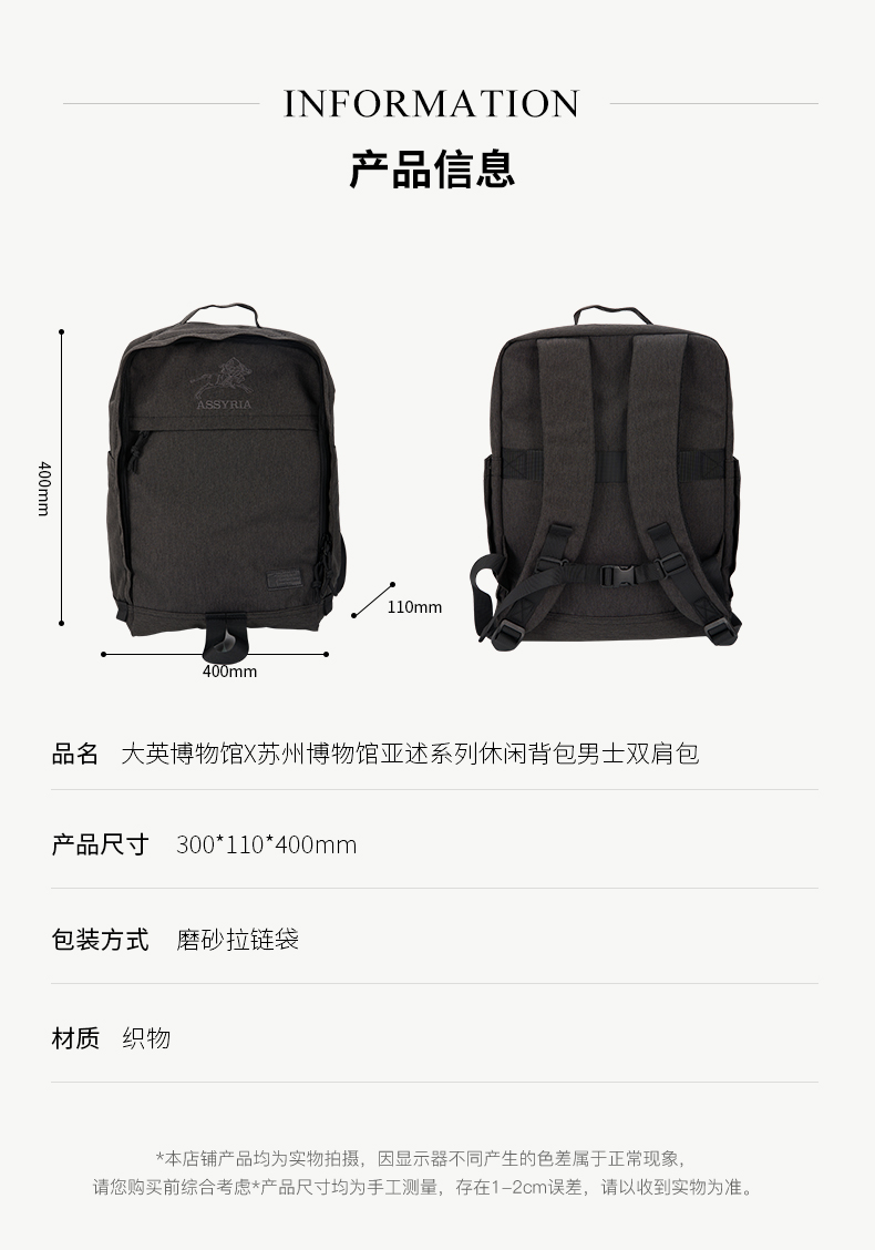 大英博物馆 X 苏州博物馆联名款 亚述系列 休闲背包 男士 双肩包 通勤背包 多用途