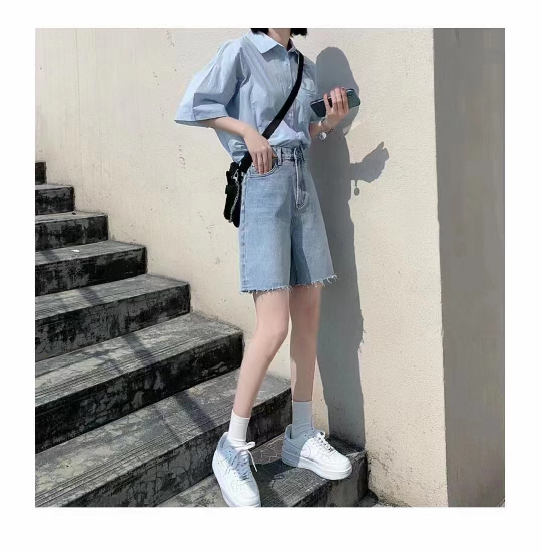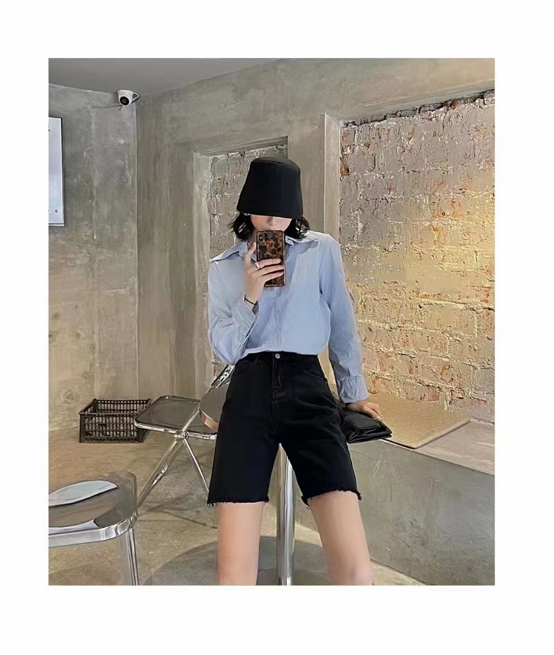 (清仓现货)【社群供T】1119韩版显瘦百搭毛边五分裤