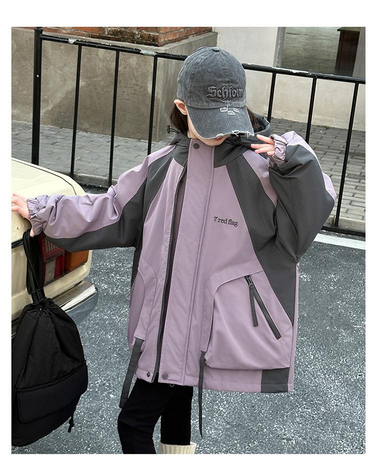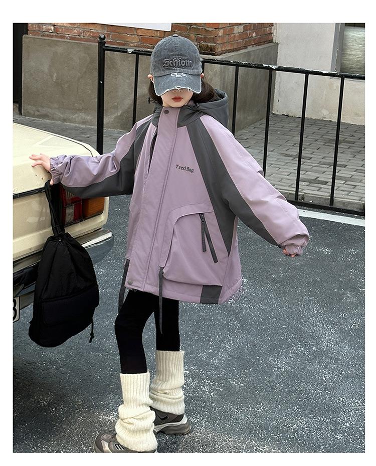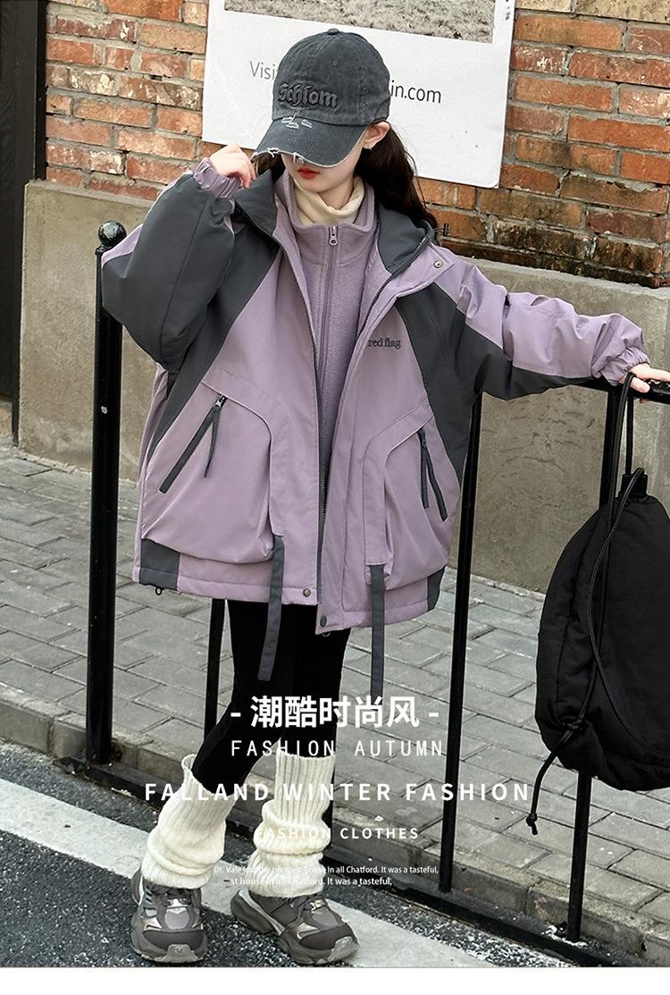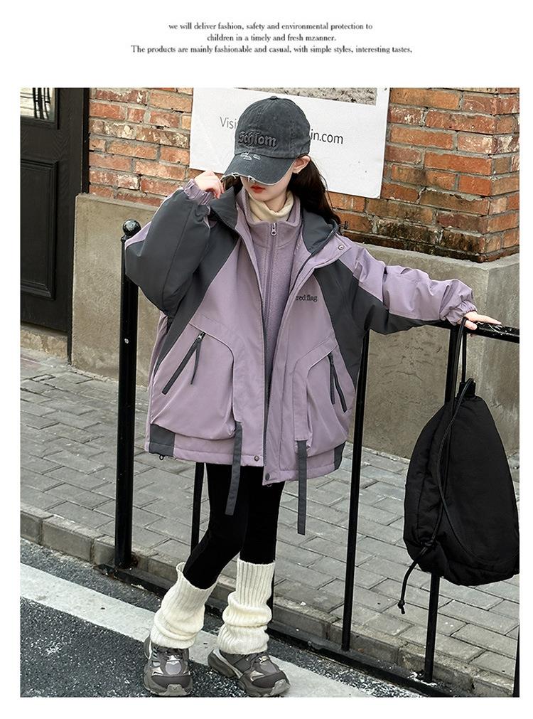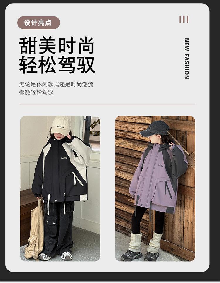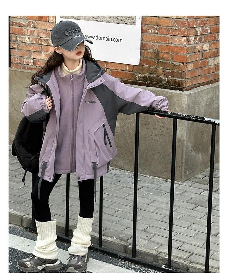 女童秋冬款连帽冲锋衣加厚夹棉保暖外套2025新款三合一洋气户外服