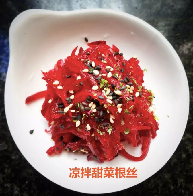 -凉拌:可以切片切丁拌于沙拉中,淋一些椰枣浆、柠檬汁等调味料,也可以切丝凉拌,加盐、醋、熟芝麻、姜等调味。甜菜根生吃最好切小块,避免味道过重。