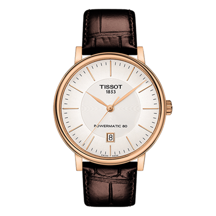 镜面 材质 | 蓝宝石水晶玻璃 | 表盘 | 精钢PVD镀玫瑰金表壳 银色表盘 大三针 日期显示 条字刻度时标 |