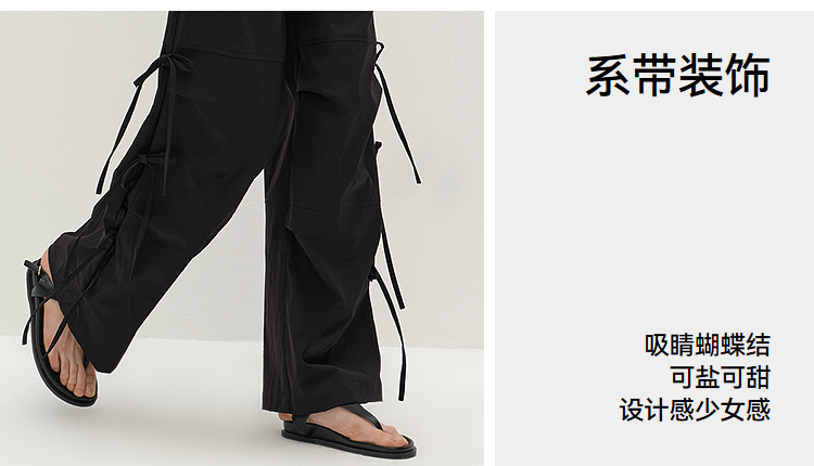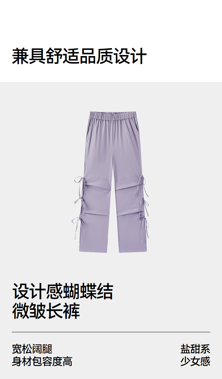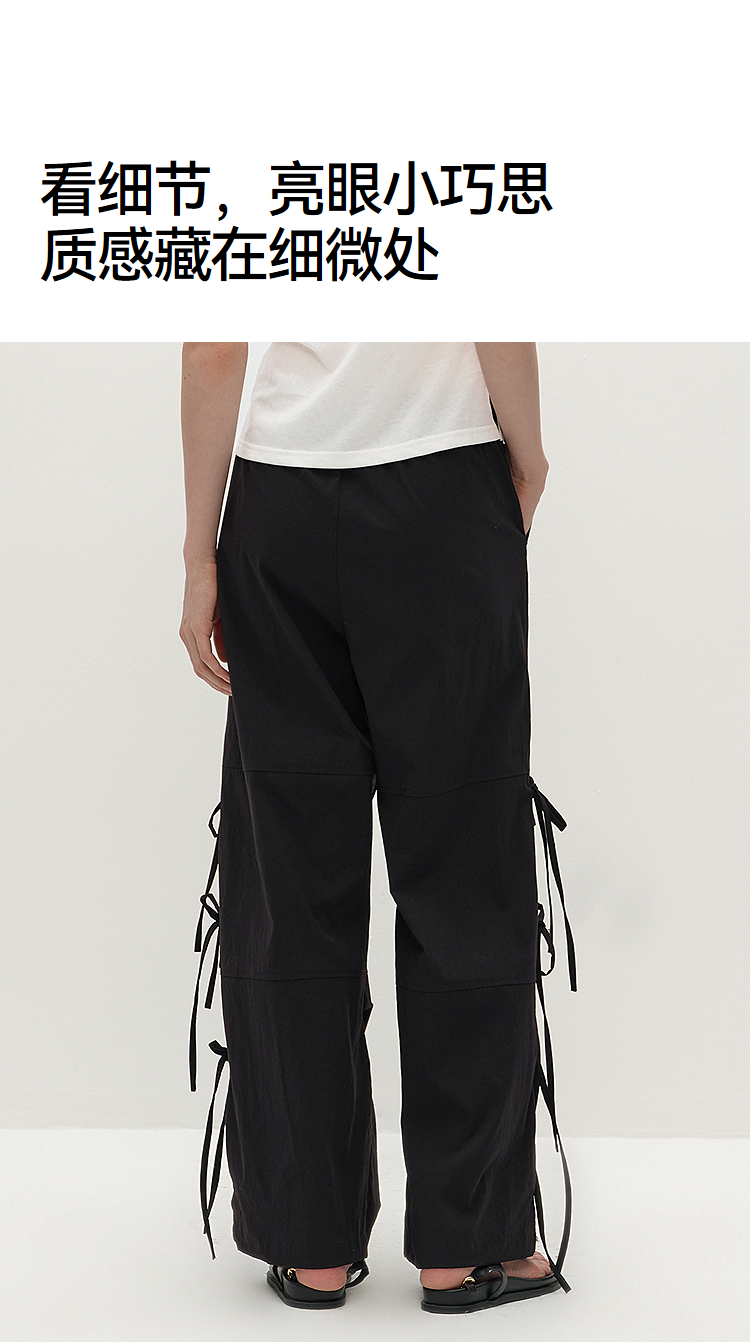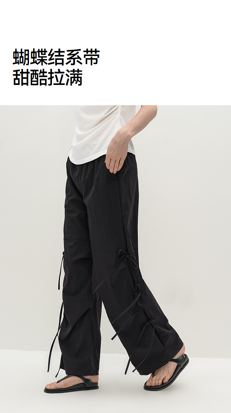 商场同款|森马休闲裤女秋蝴蝶结宽松肌理长裤2025新款甜酷阔腿裤