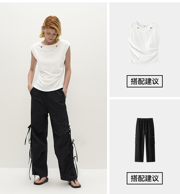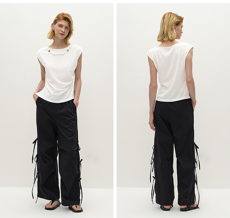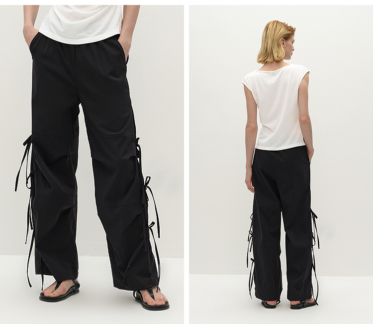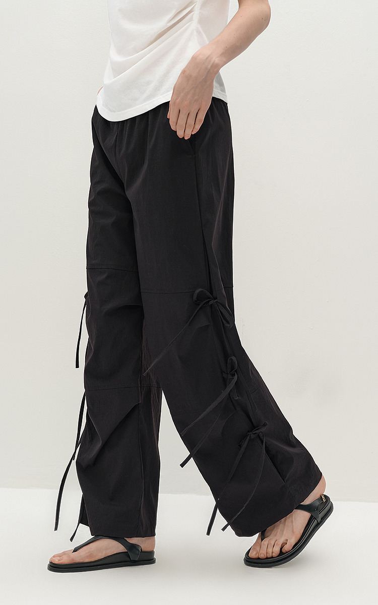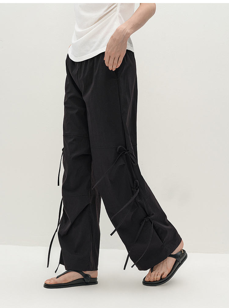 商场同款|森马休闲裤女秋蝴蝶结宽松肌理长裤2025新款甜酷阔腿裤