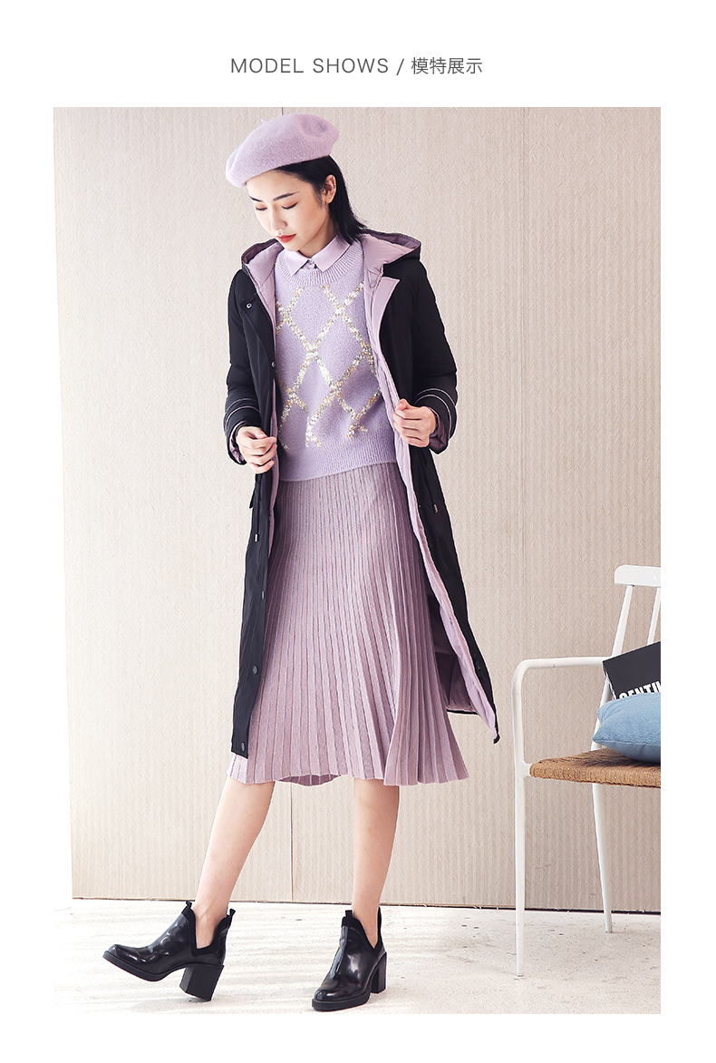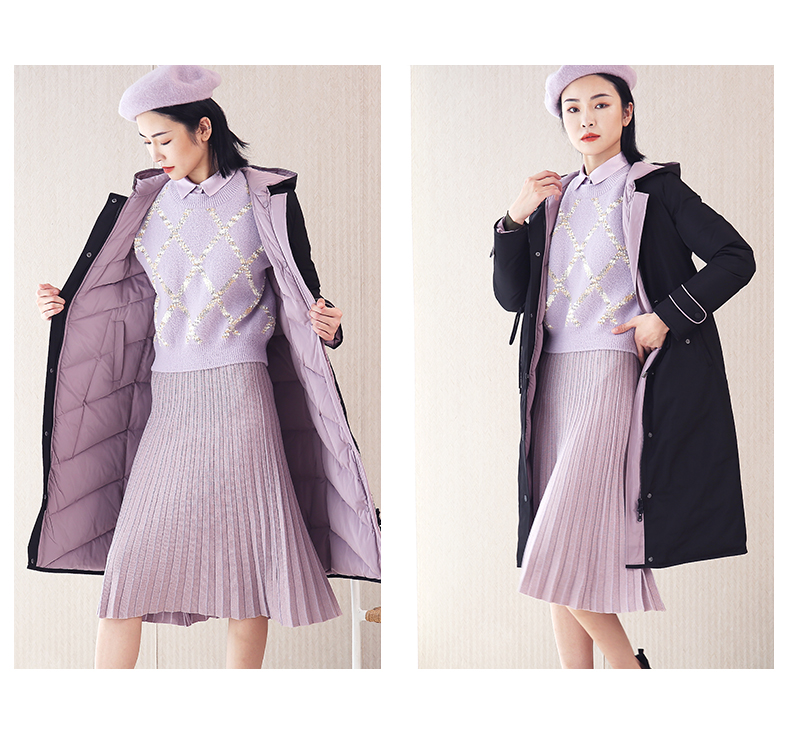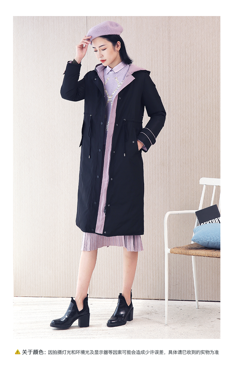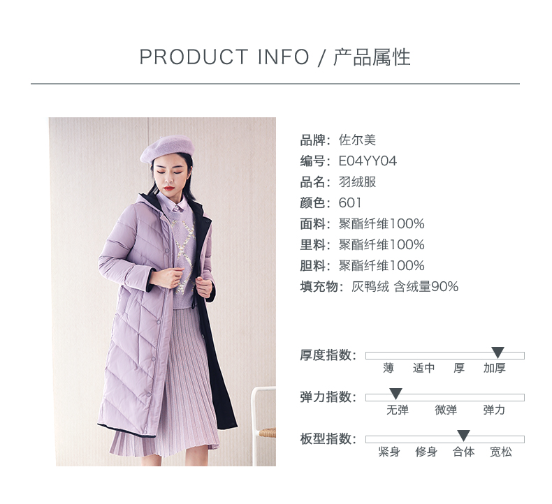 佐尔美秋冬新款连帽简约气质减龄纯色双穿羽绒服E04YY04