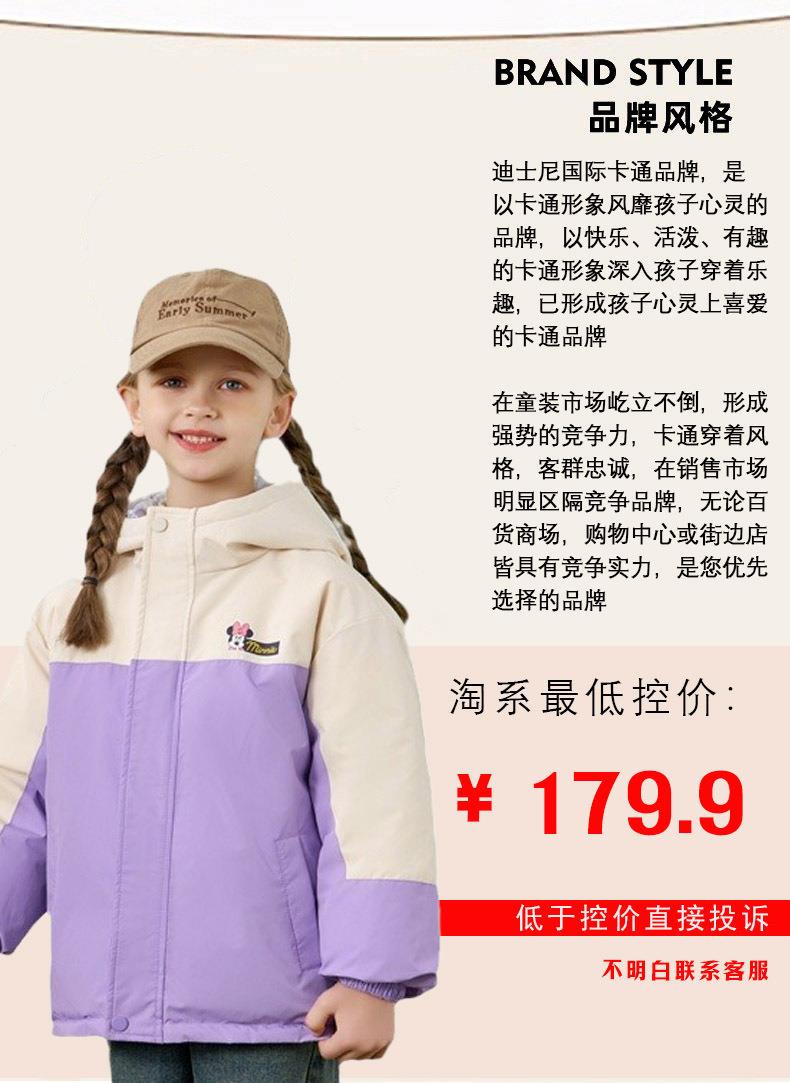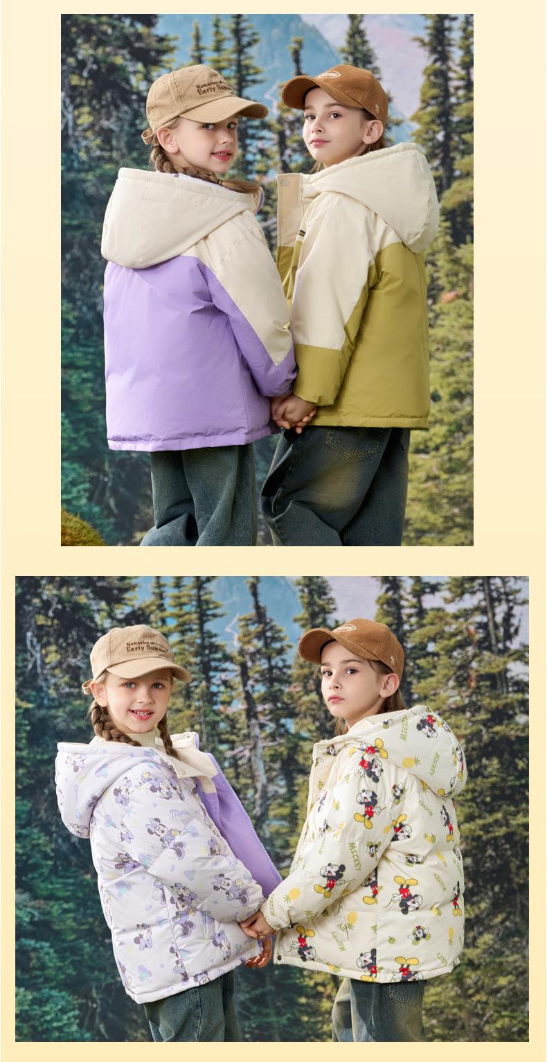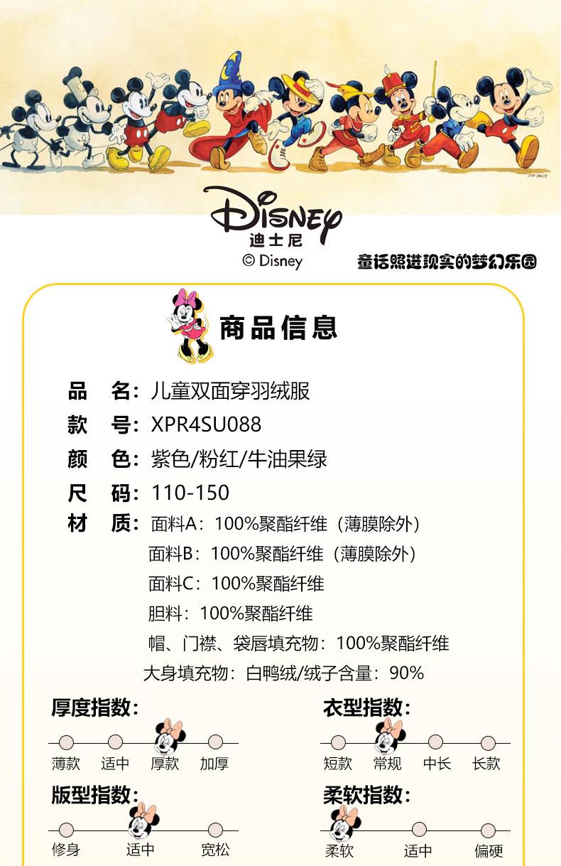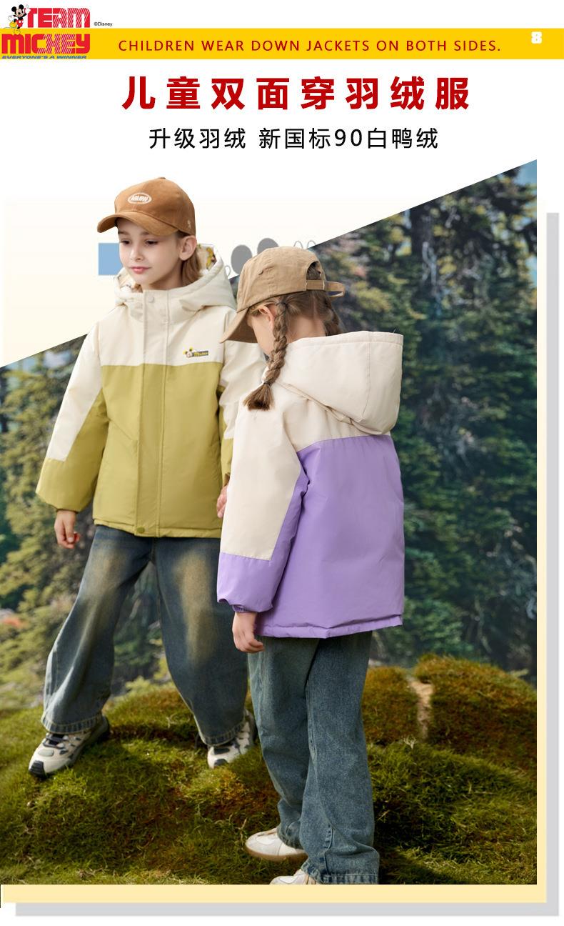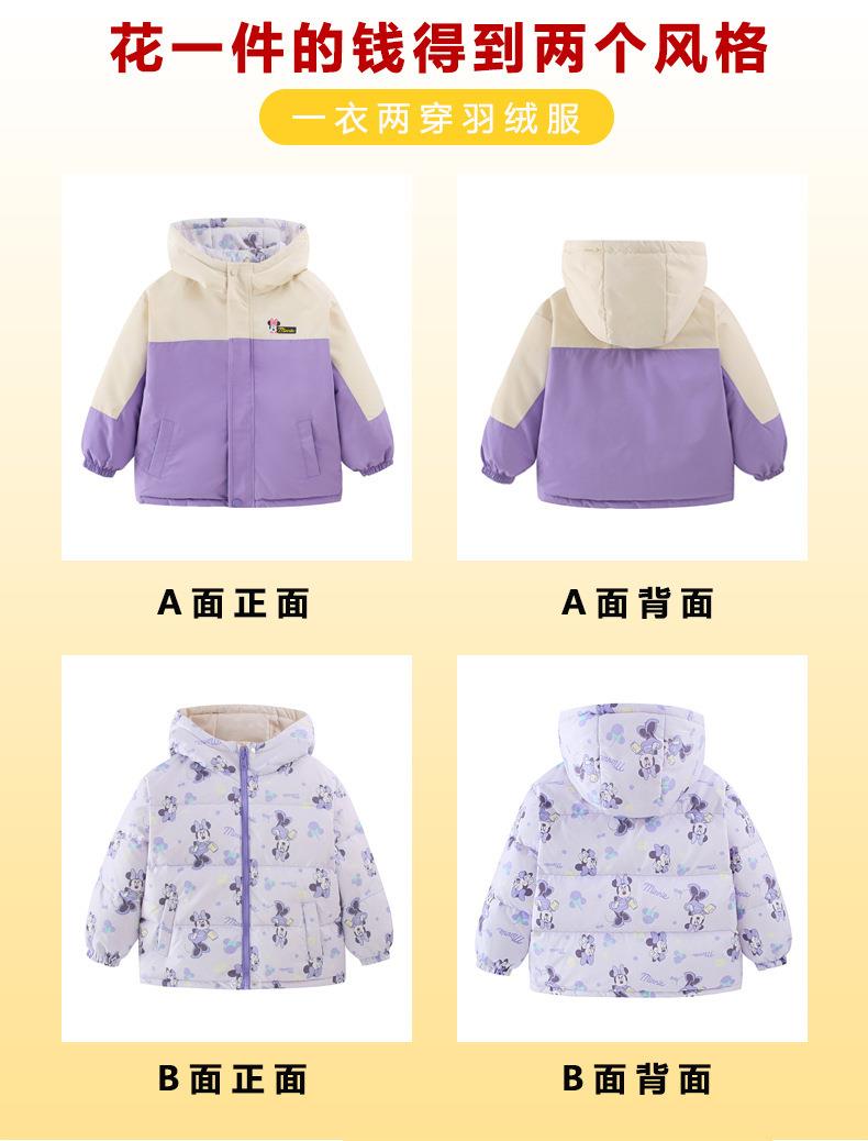 迪士尼儿童双面穿90白鸭绒羽绒服加厚连帽外套韩版新款中小童冬装