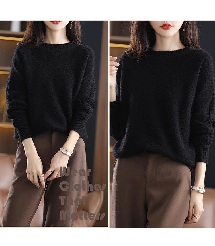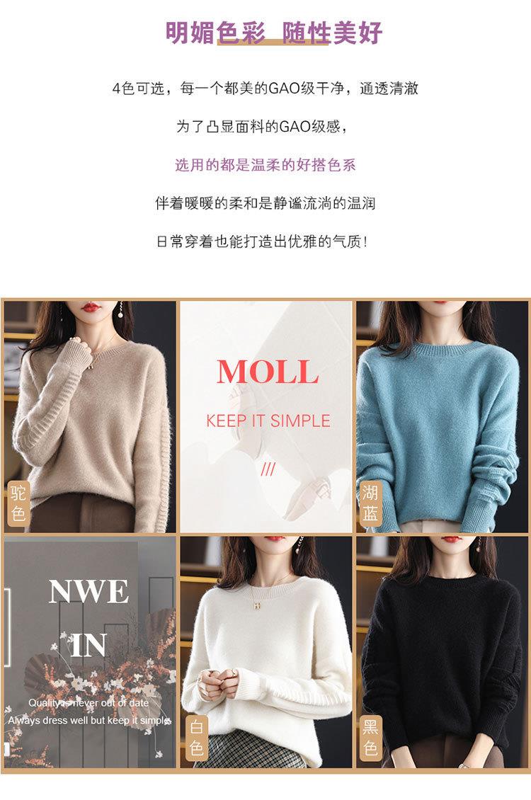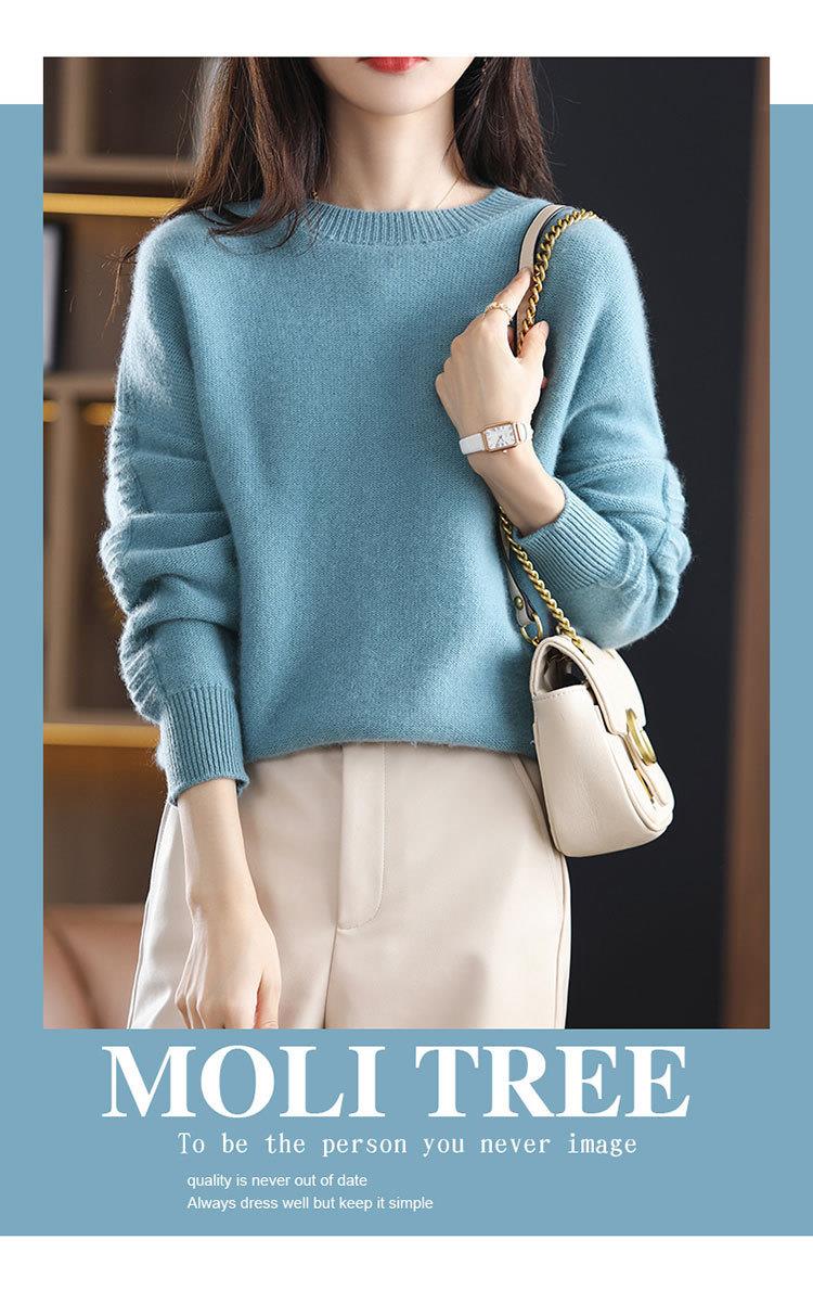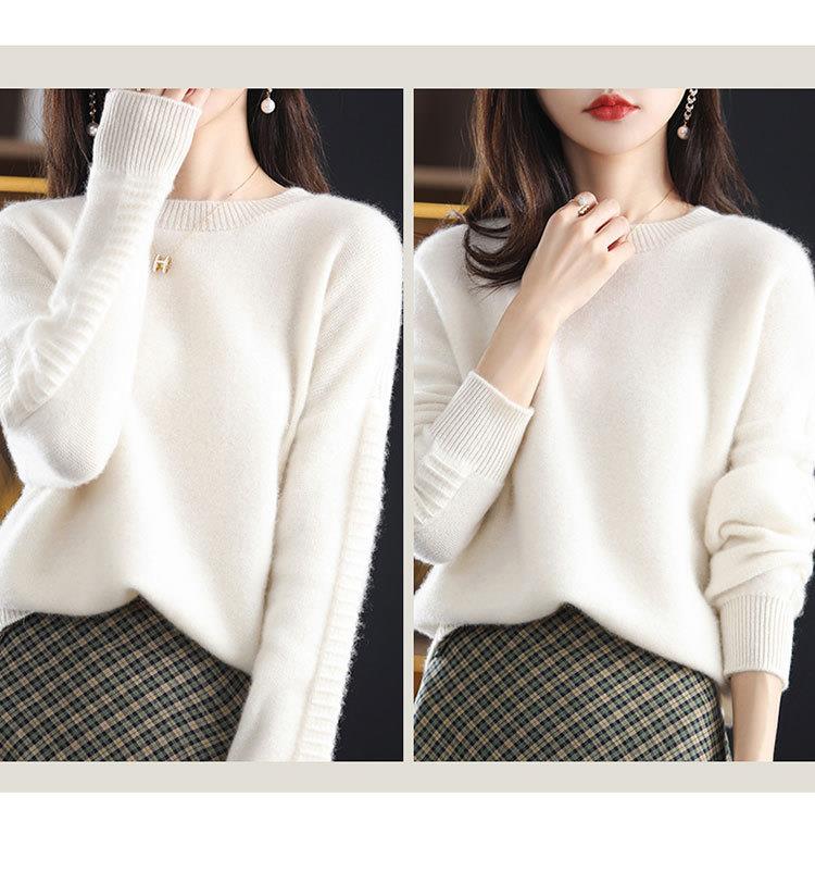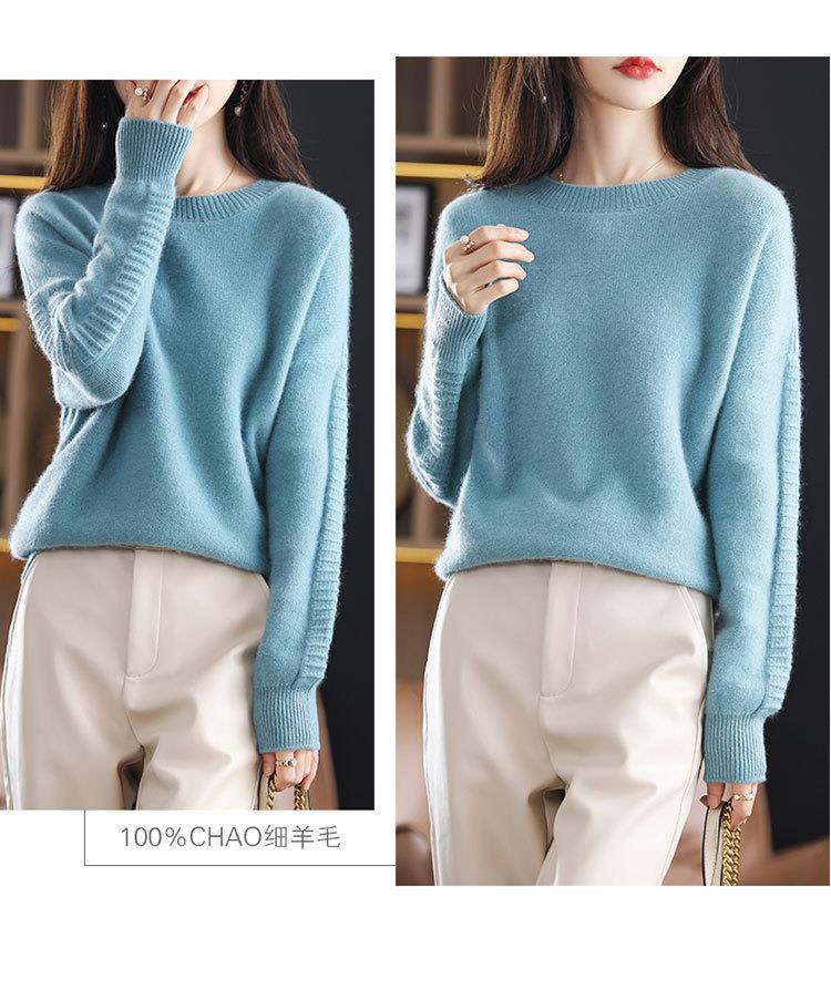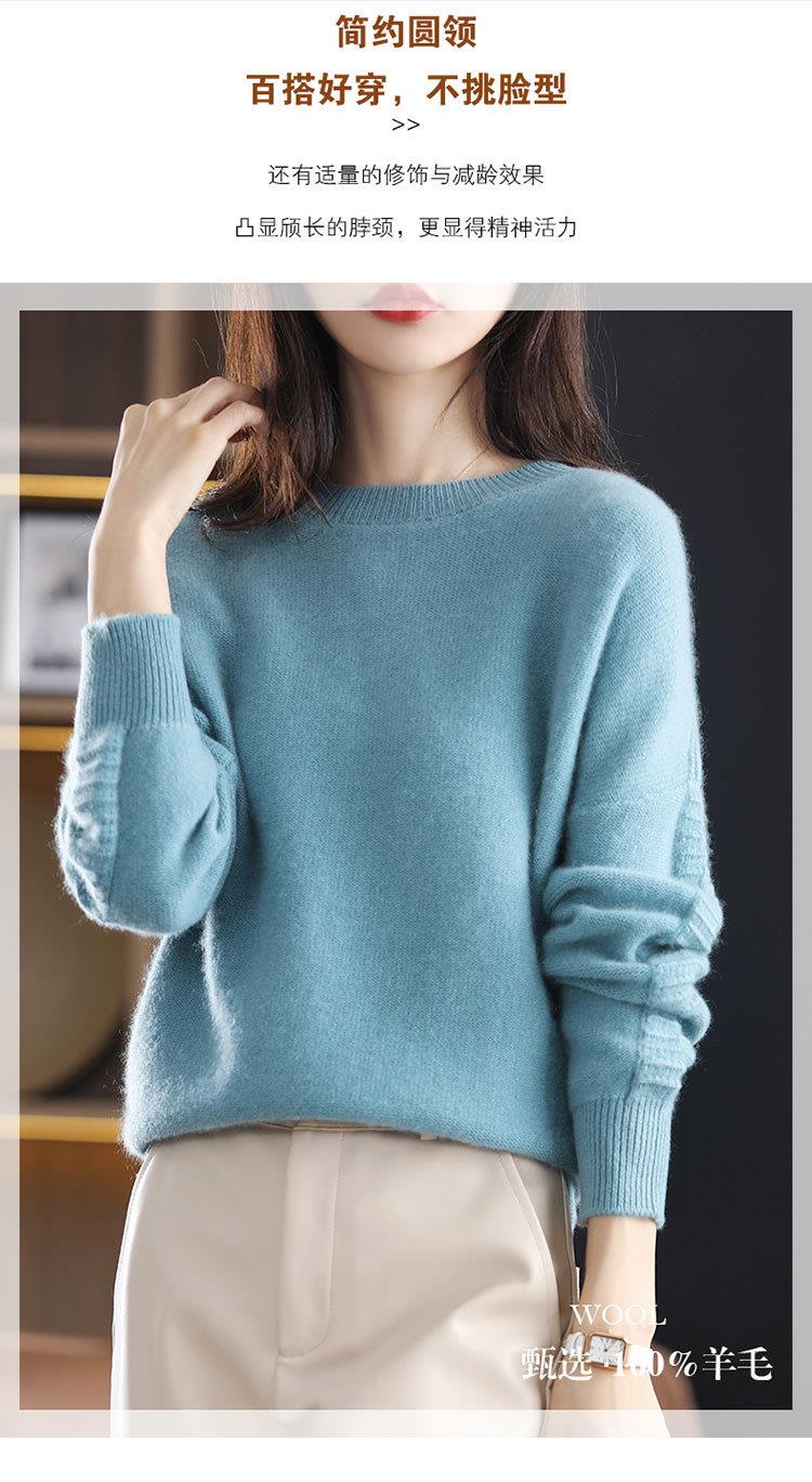 2023年秋冬新款韩版女士纯羊毛圆领长袖宽松套头打底女士羊毛衫