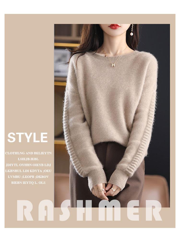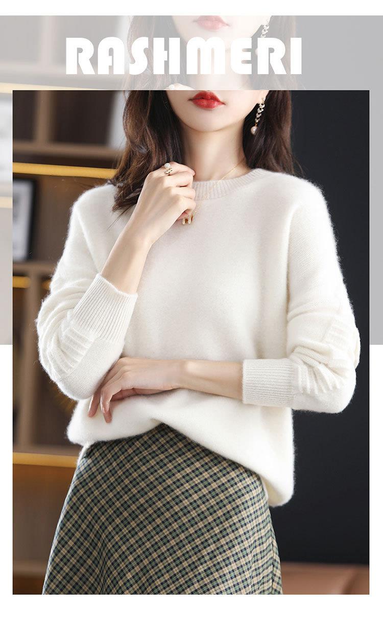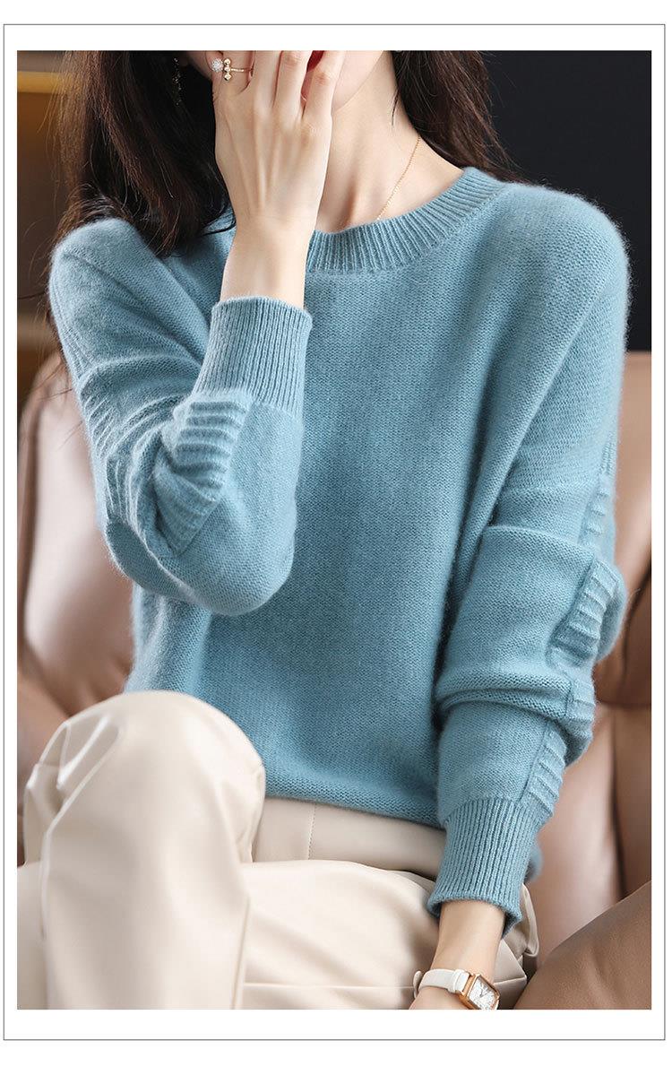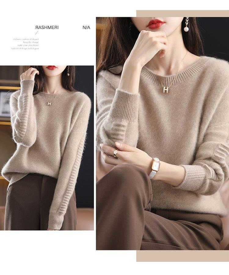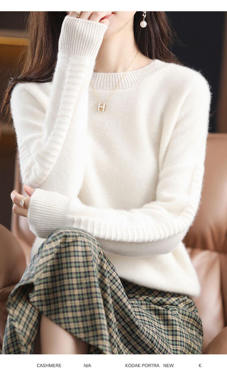 2023年秋冬新款韩版女士纯羊毛圆领长袖宽松套头打底女士羊毛衫