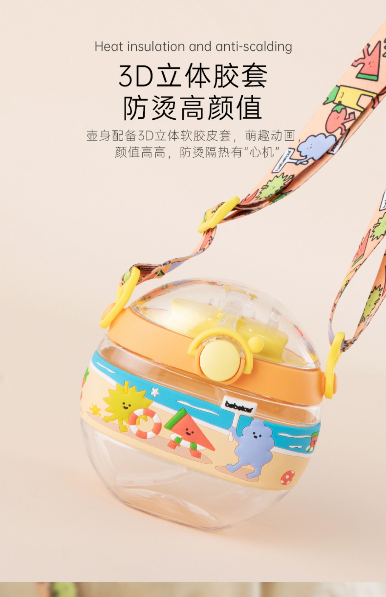 bebetour儿童贝壳背带水杯420ml