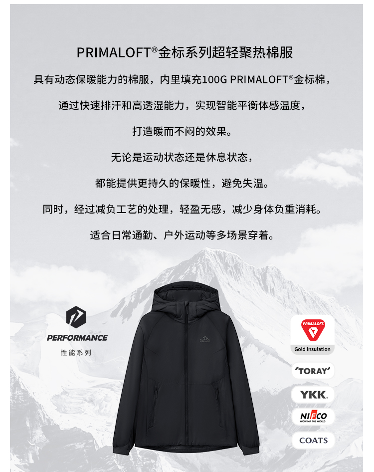 【P系列】伯希和Primaloft连帽棉服女新款户外金标P棉轻薄外套男