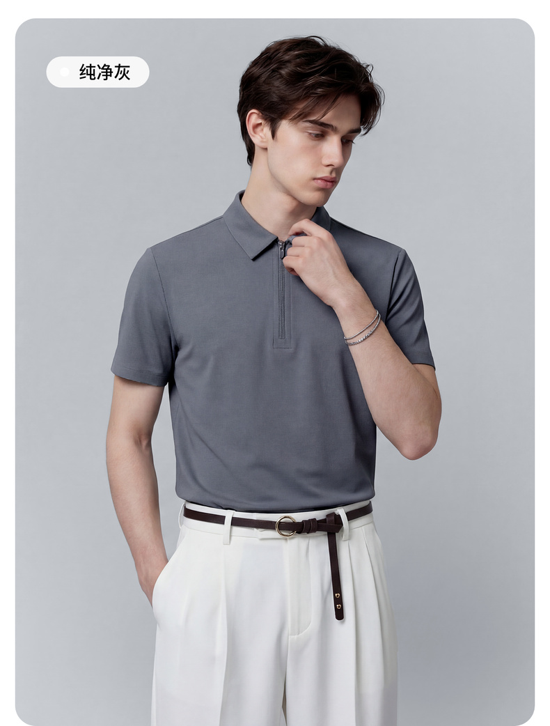 【高弹舒适】圣得西2026夏季新款男士翻领polo衫纯色商务绅士短袖