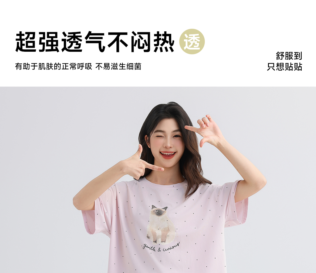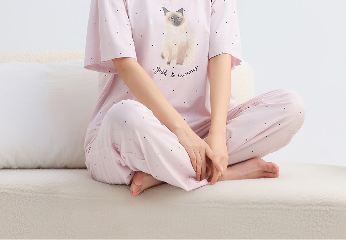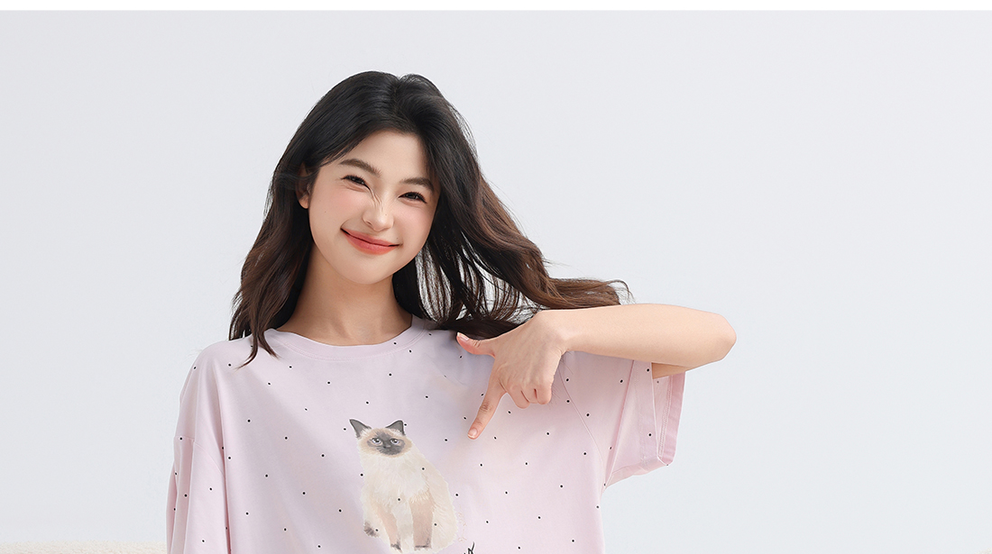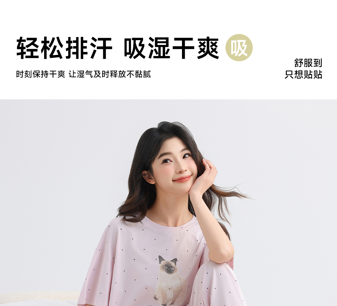 美季美优女士猫咪短袖长裤套装