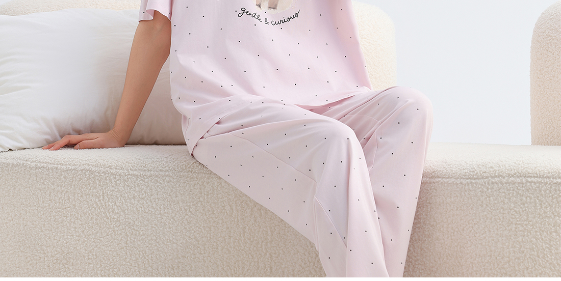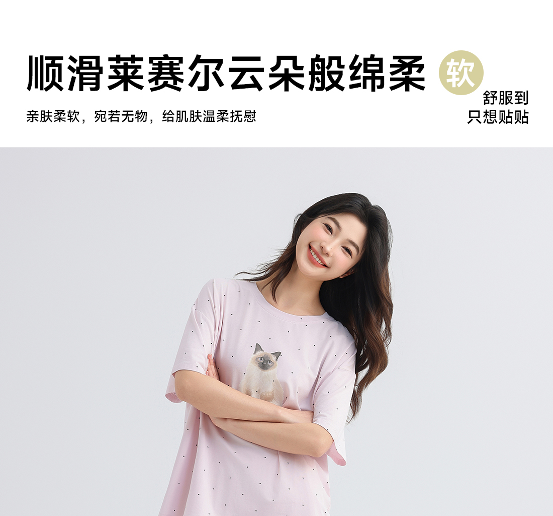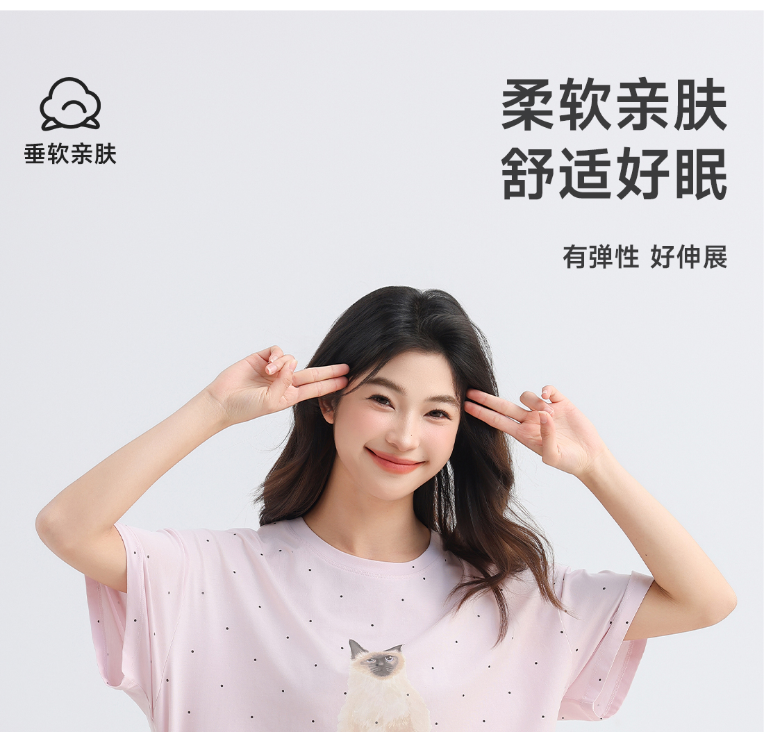 美季美优女士猫咪短袖长裤套装