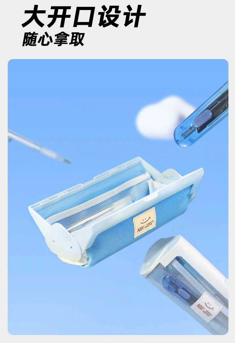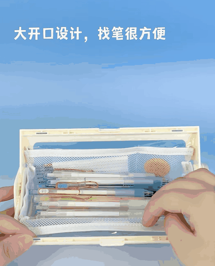 开合角度大小可以随意调节🤏 大开口的设计,找到自己想要的文具和取出都非常方便。