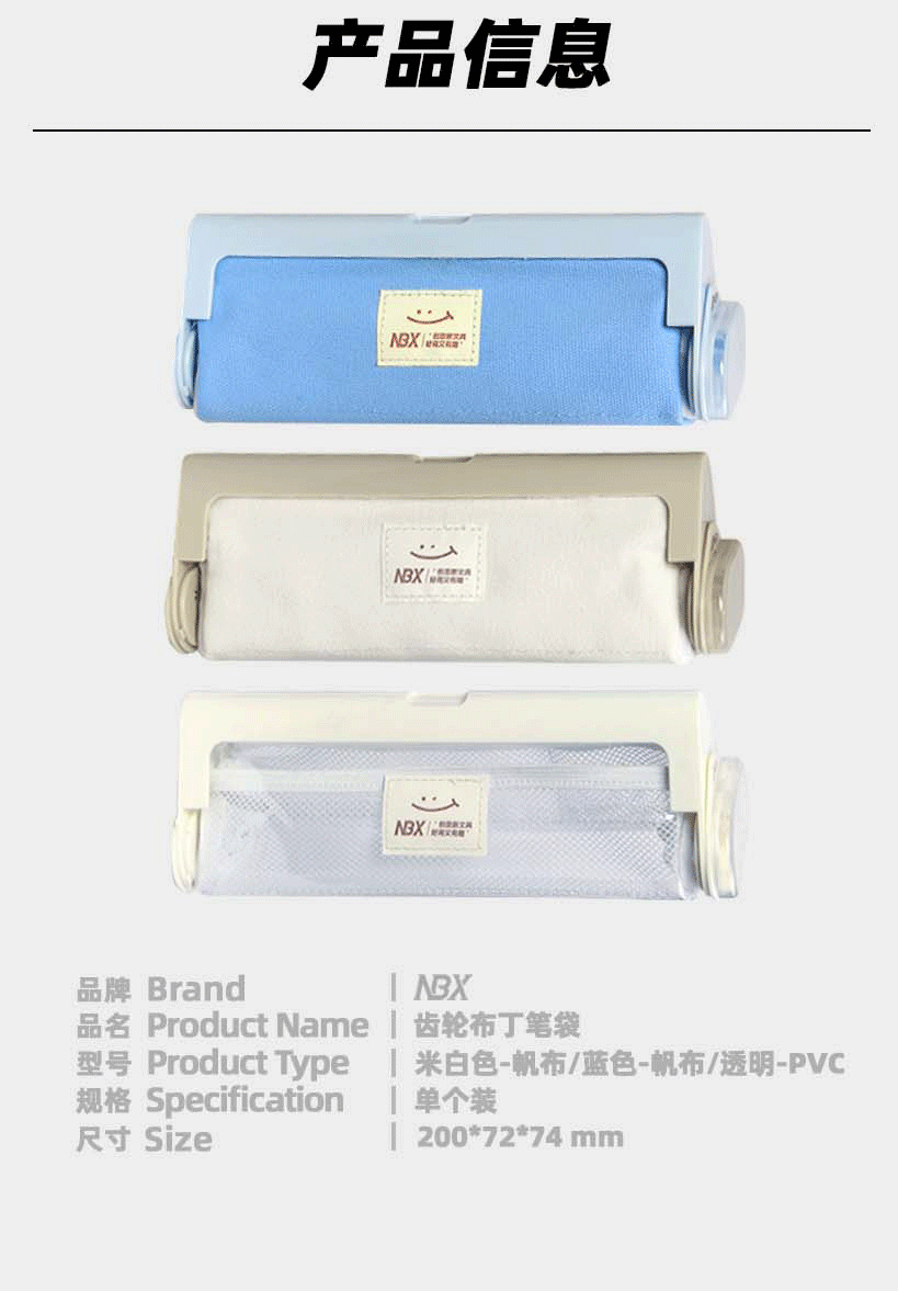 【商品名称】NBX齿轮布丁笔袋 【物流说明】48小时内发货 【发货说明】新疆、西藏地区不发 【售后说明】1.商品非质量问题不支持退换;2.质量、缺件问题请签收后48小时内反馈,过期无法为您处理喔;3.快递送货外观有严重破损的请拒收。