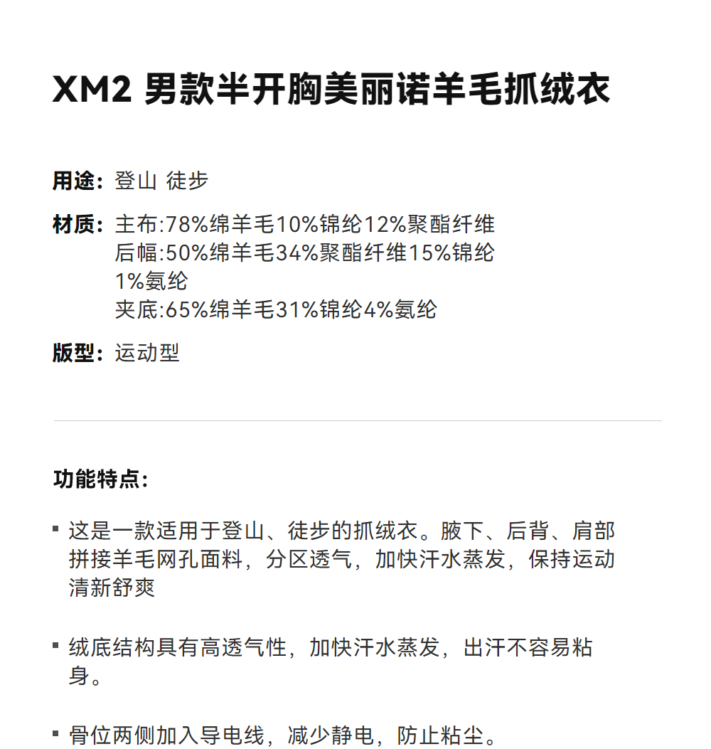 KAILAS凯乐石 XM2 男款半开胸美丽诺羊毛抓绒衣 KG2532116