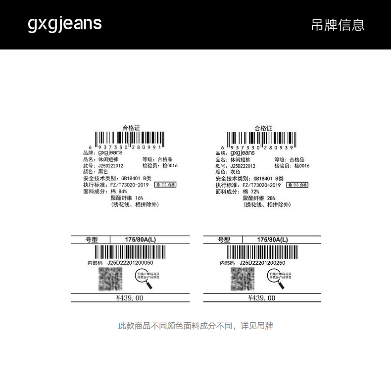 gxg.jeans男装 多色分割设计基础宽松休闲短裤男薄款 25年夏热卖