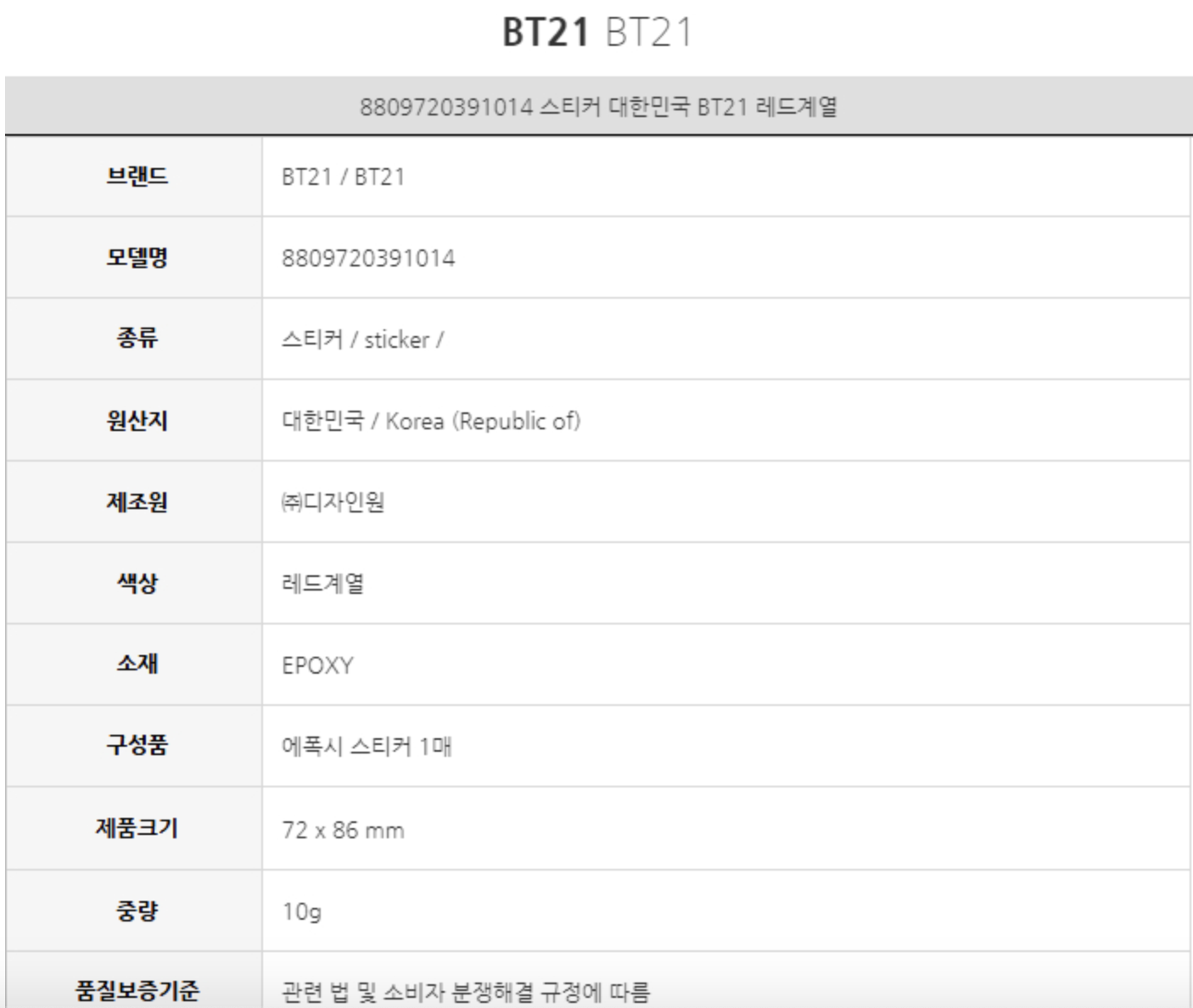 韩国 可爱Line Friends BT21 TATA环氧贴(类型2)JPY带授权招加盟代理