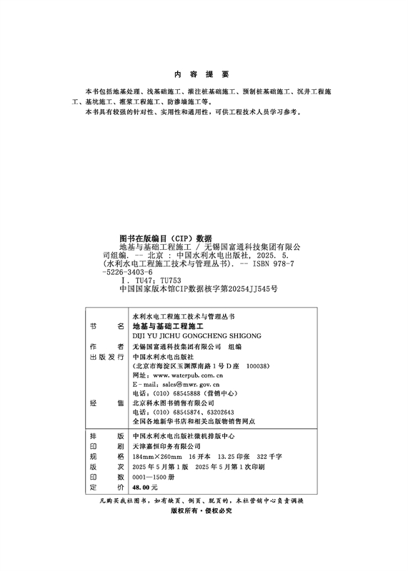 地基与基础工程施工(水利水电工程施工技术与管理丛书)