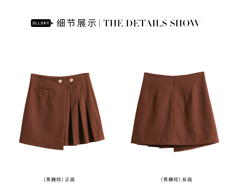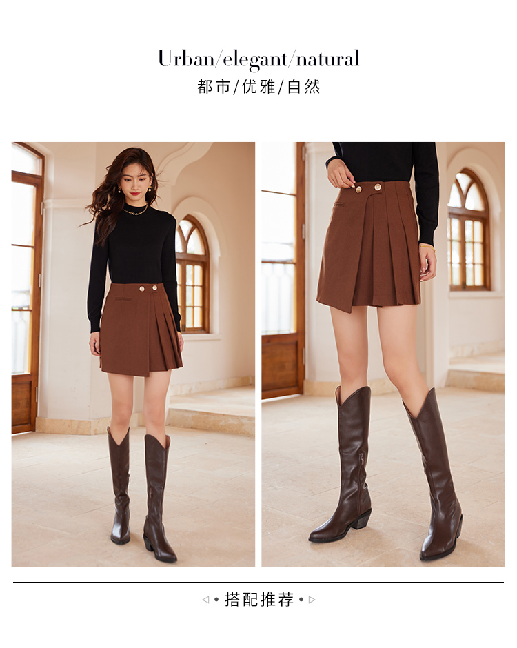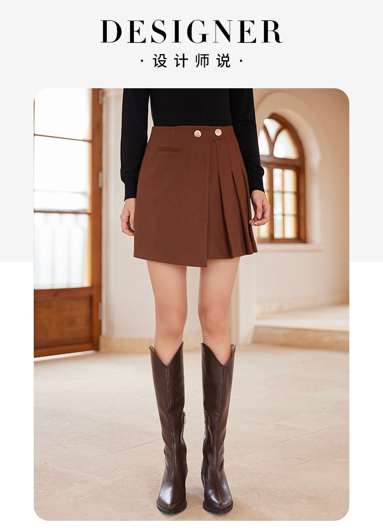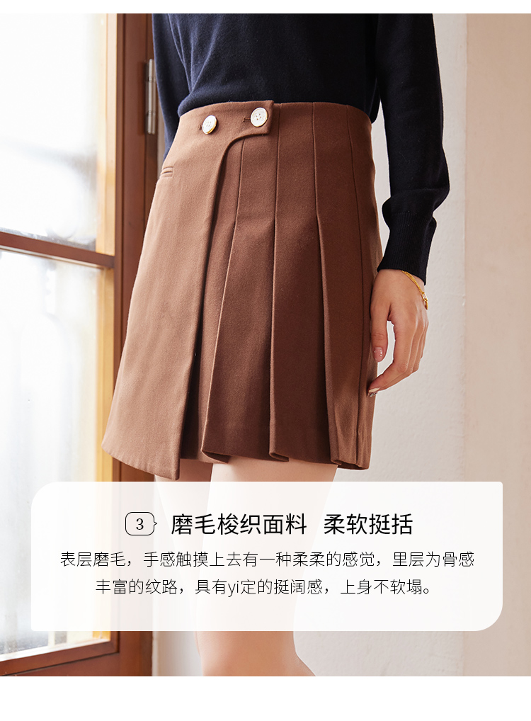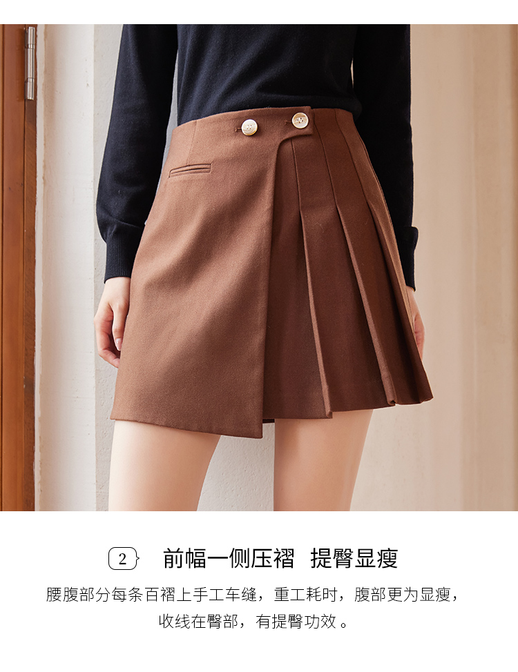 【129选3件,不退换】熙世界不规则百褶A字短裙女秋冬新款高腰提臀显瘦磨毛半身裙