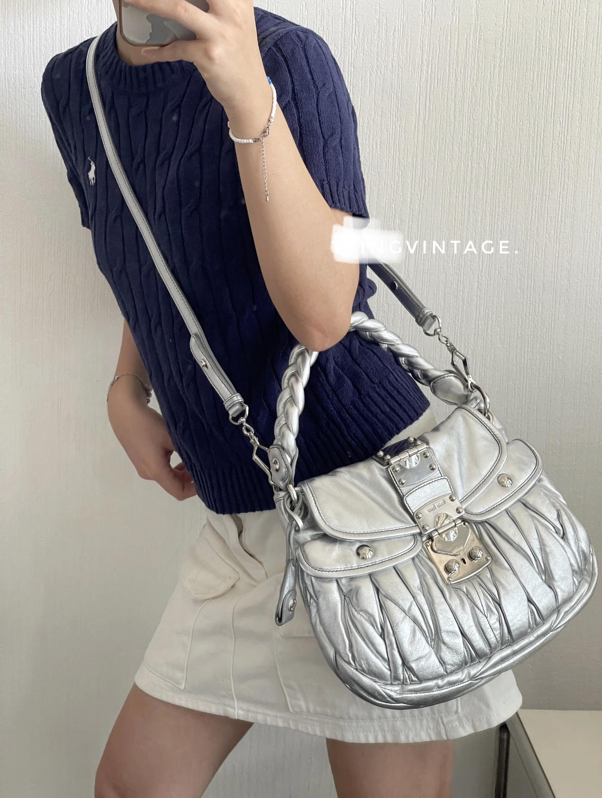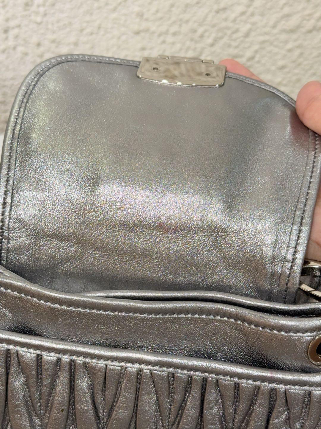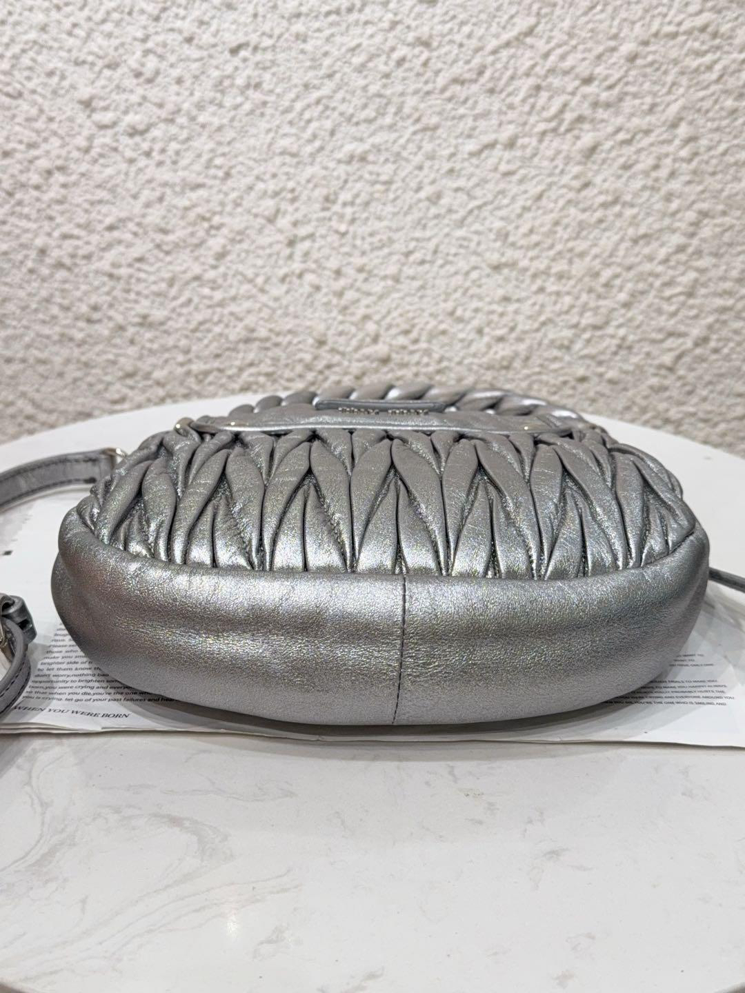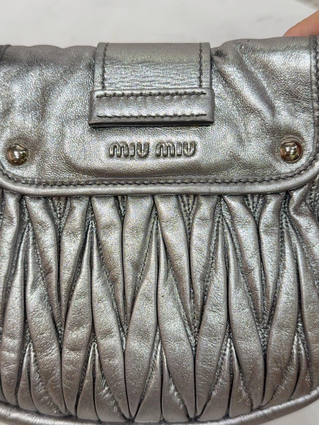 【商品詳情】正品二手 miumiu coffer 银色 水钻 羊皮 编织包🍁93新 23×18 配件:肩带。手柄和金属正常使用感。走秀款 重工超绝
