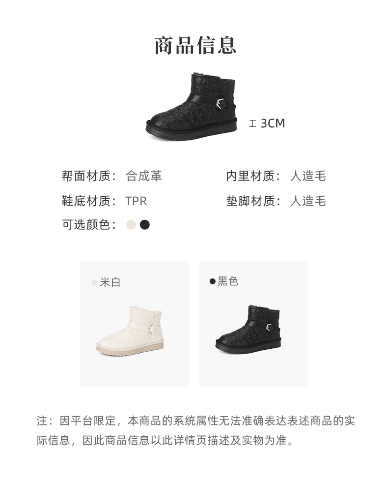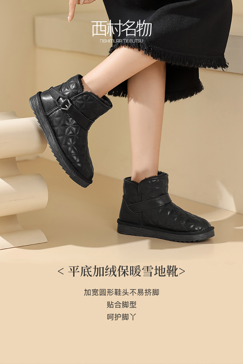 西村名物2023年冬季新品平底加绒保暖雪地靴休闲防滑女靴子X23DS47601