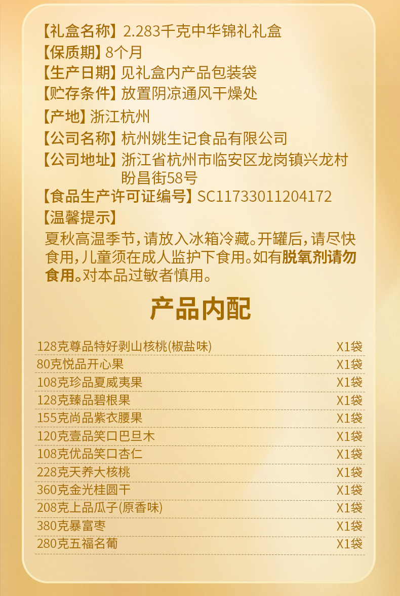 姚生记年节坚果炒货礼盒 中华锦礼礼盒2.283千克【臻礼贺岁】