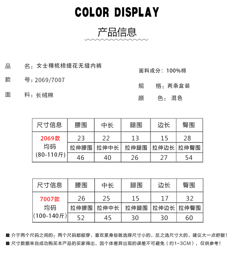 (两条盒装)【爆款】加大版女士无缝精梳棉全棉超弹透气三角裤舒适内裤7007/2069/2073/2920