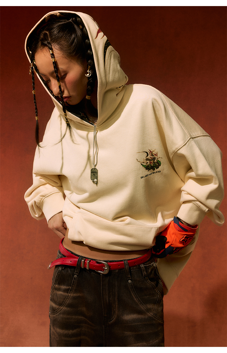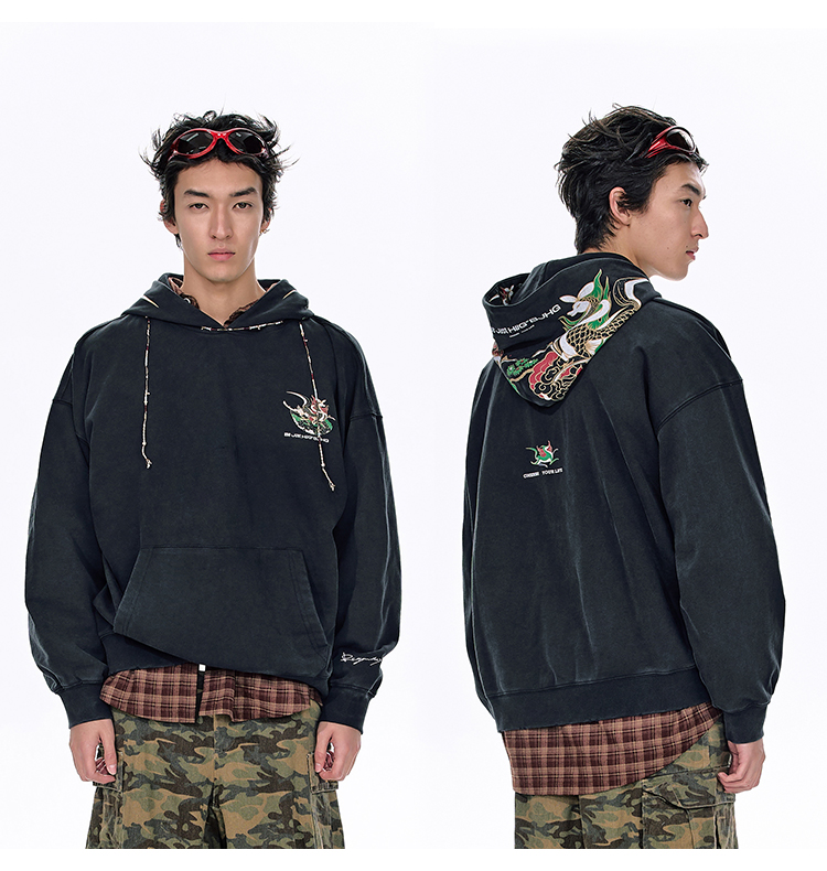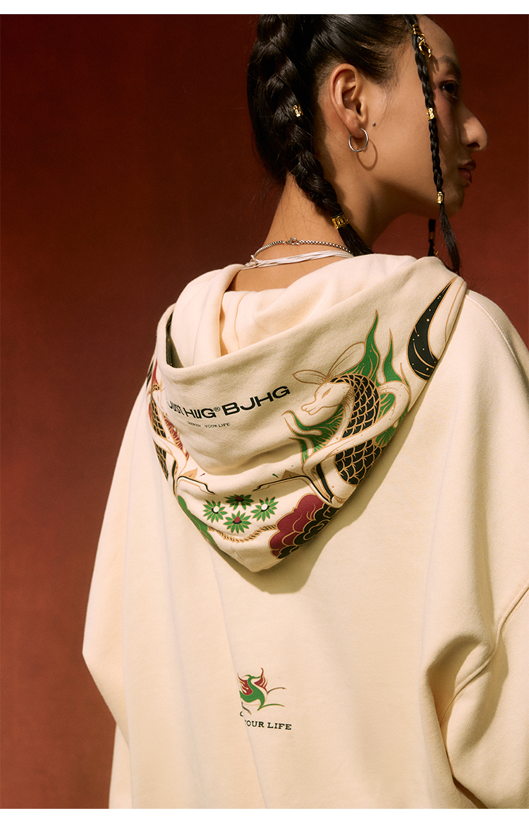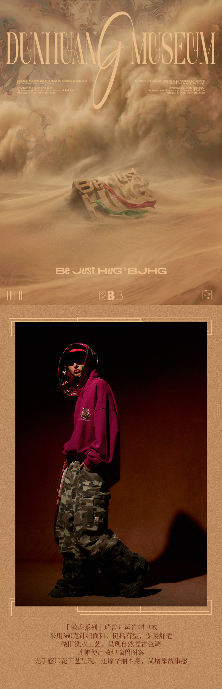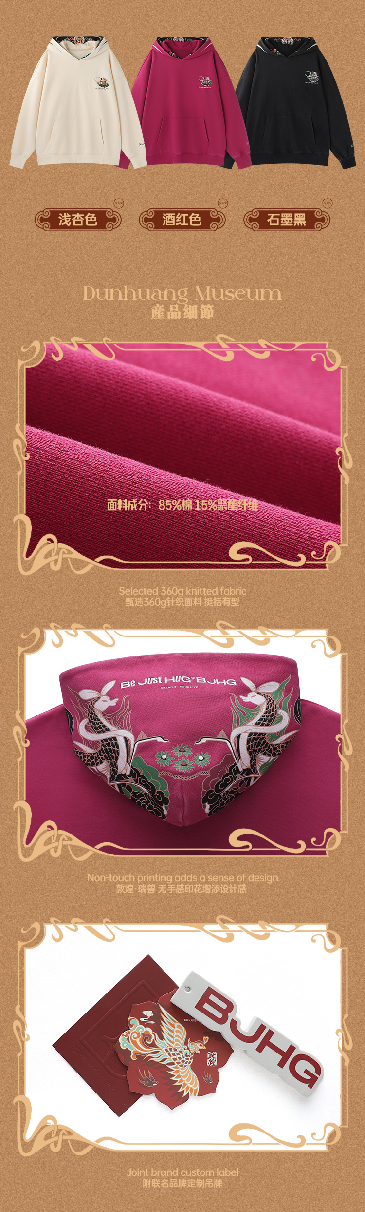 敦煌联名BJHG不计后果卫衣男款冬美式重磅连帽情侣做旧印花上衣女