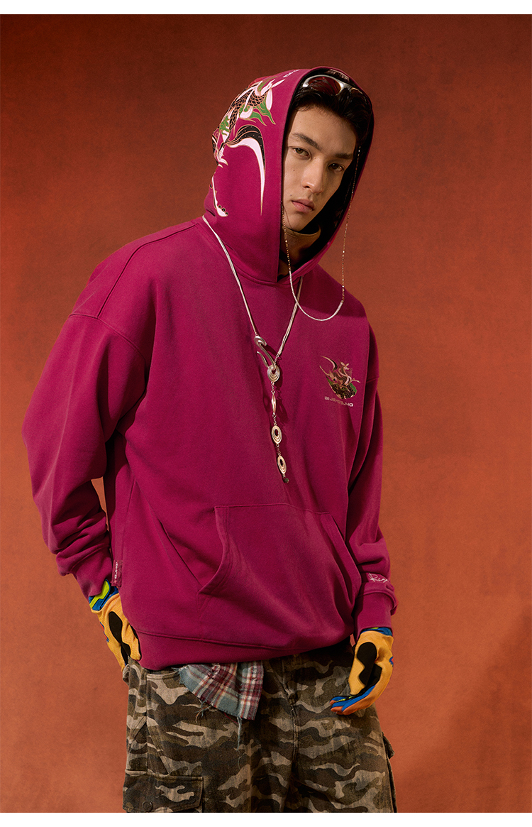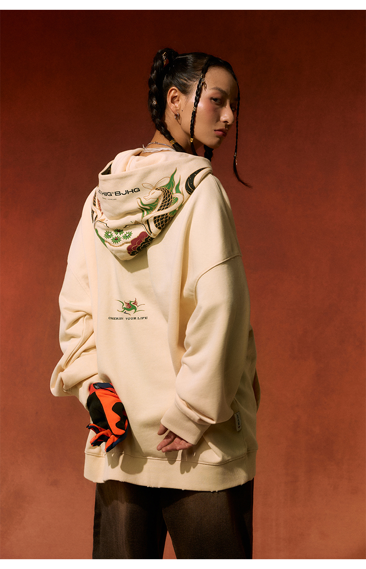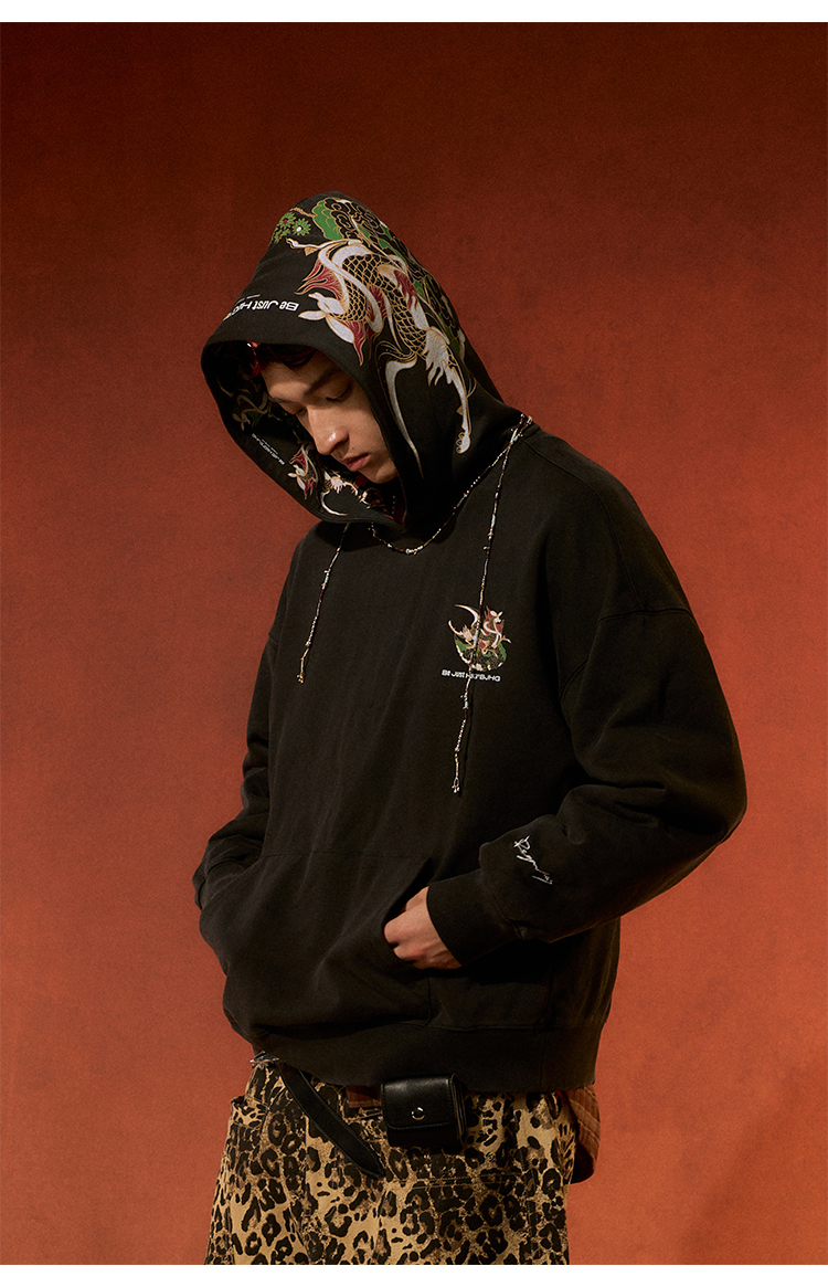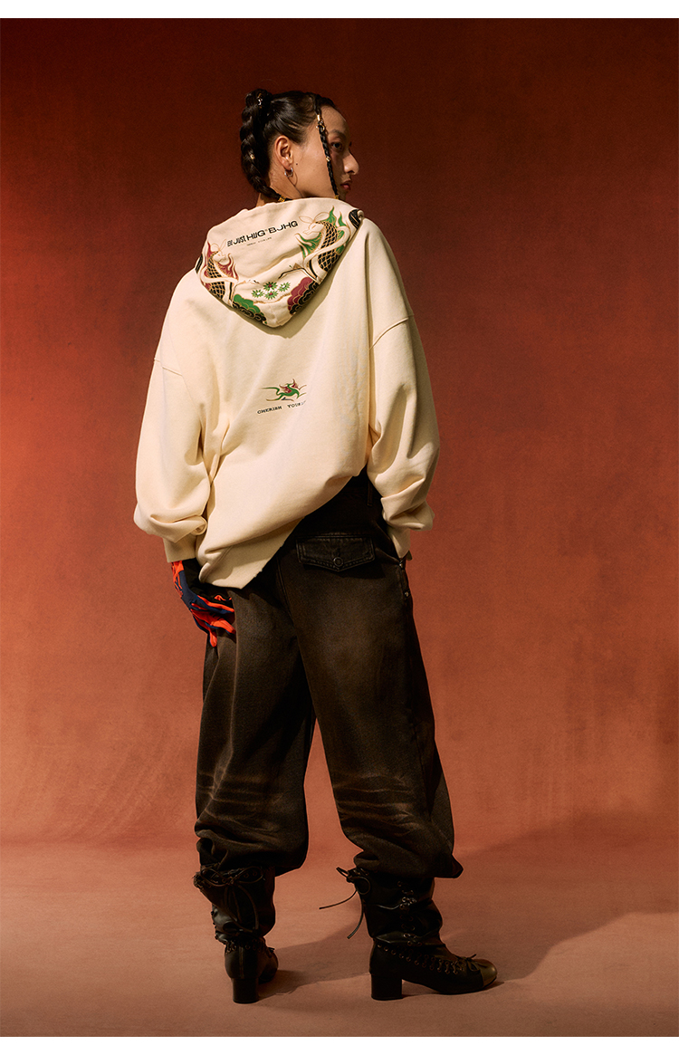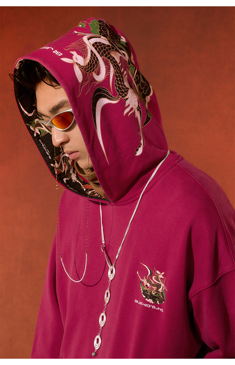 敦煌联名BJHG不计后果卫衣男款冬美式重磅连帽情侣做旧印花上衣女
