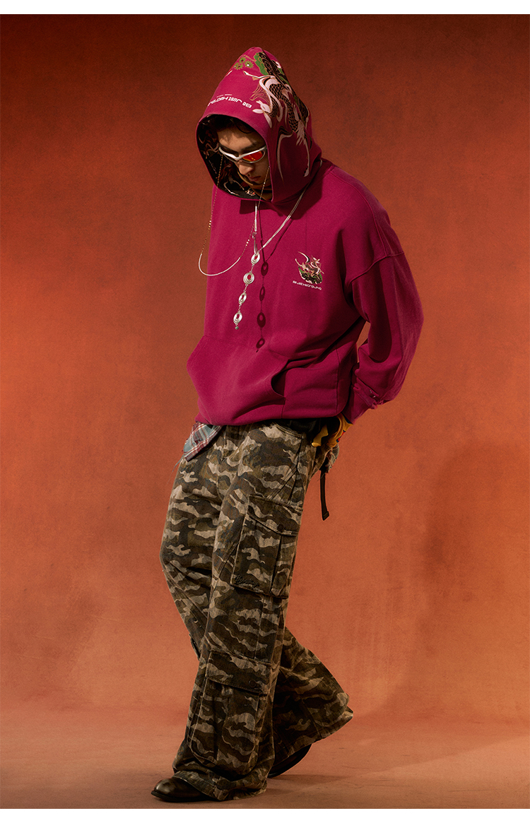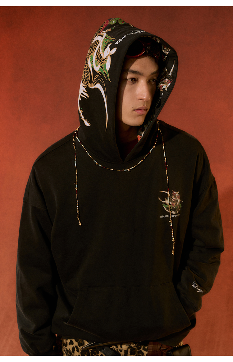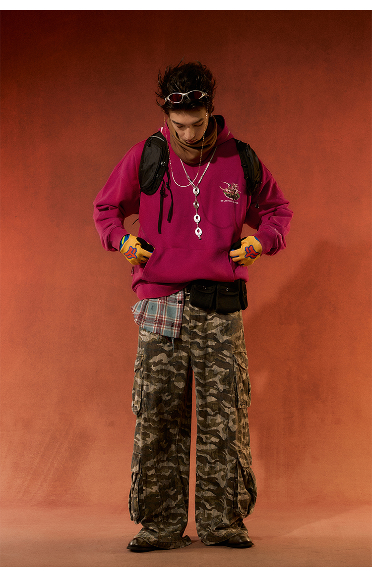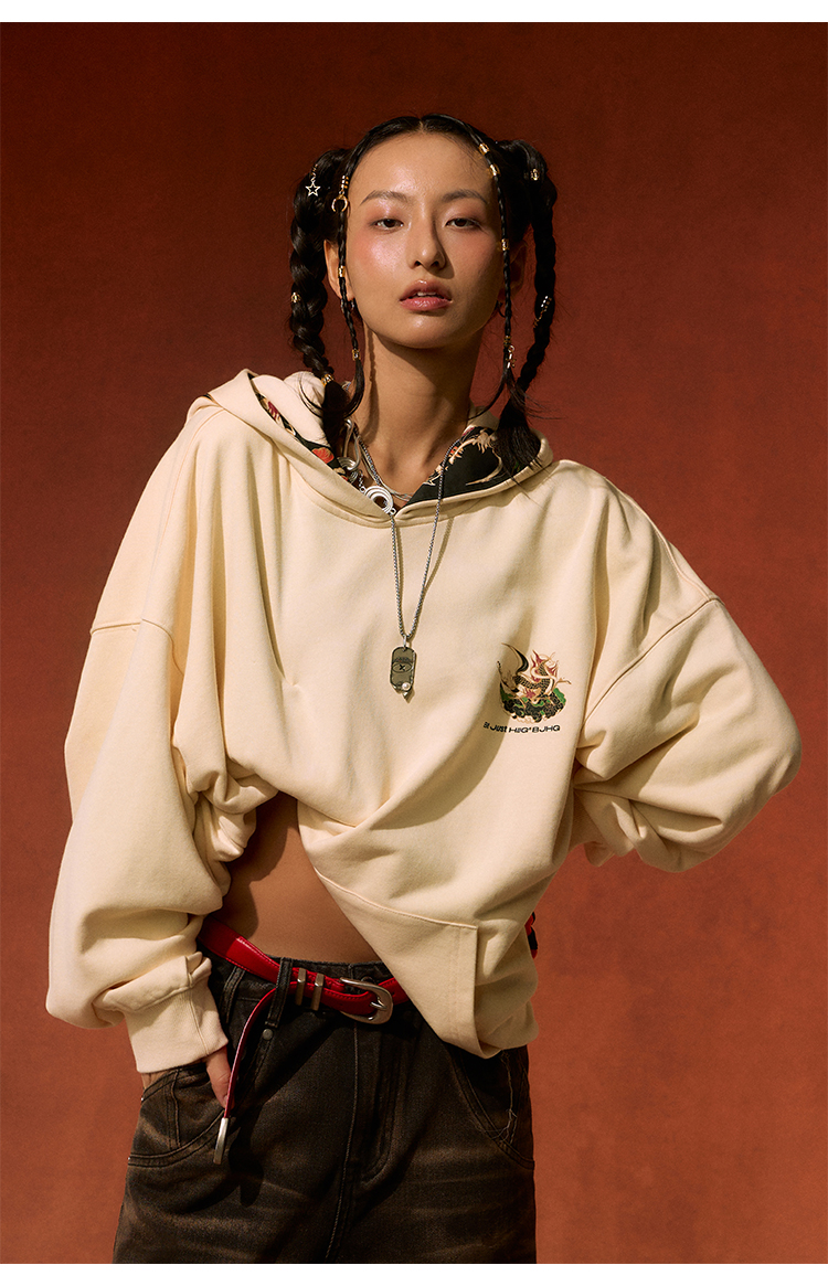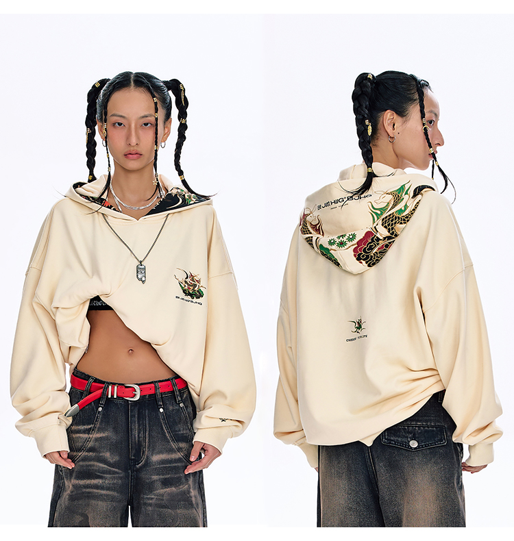 敦煌联名BJHG不计后果卫衣男款冬美式重磅连帽情侣做旧印花上衣女