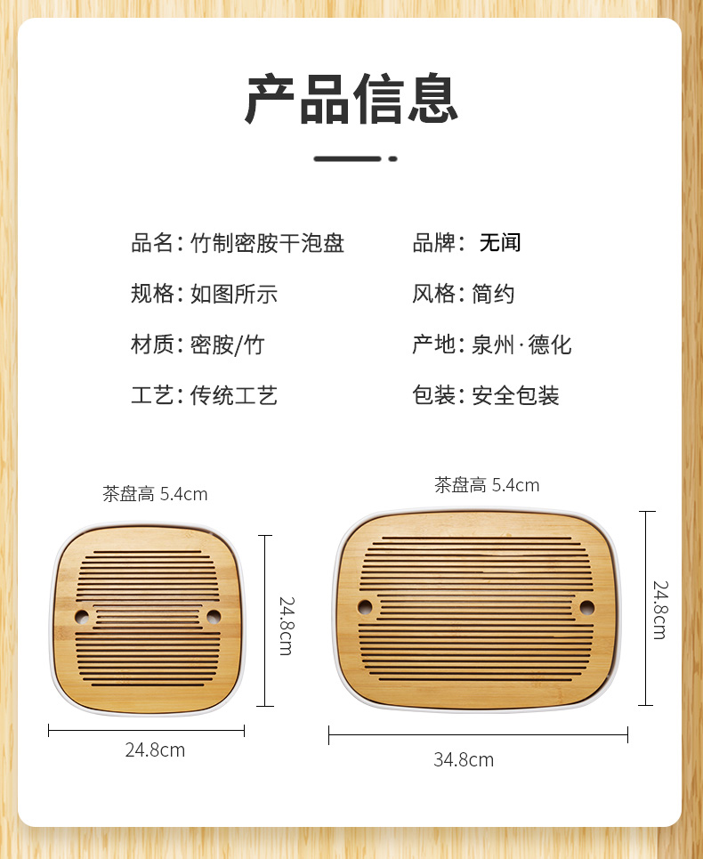 无闻2022新款茶盘 密胺盘 家用托盘干泡茶盘储水式茶台功夫茶具干泡台