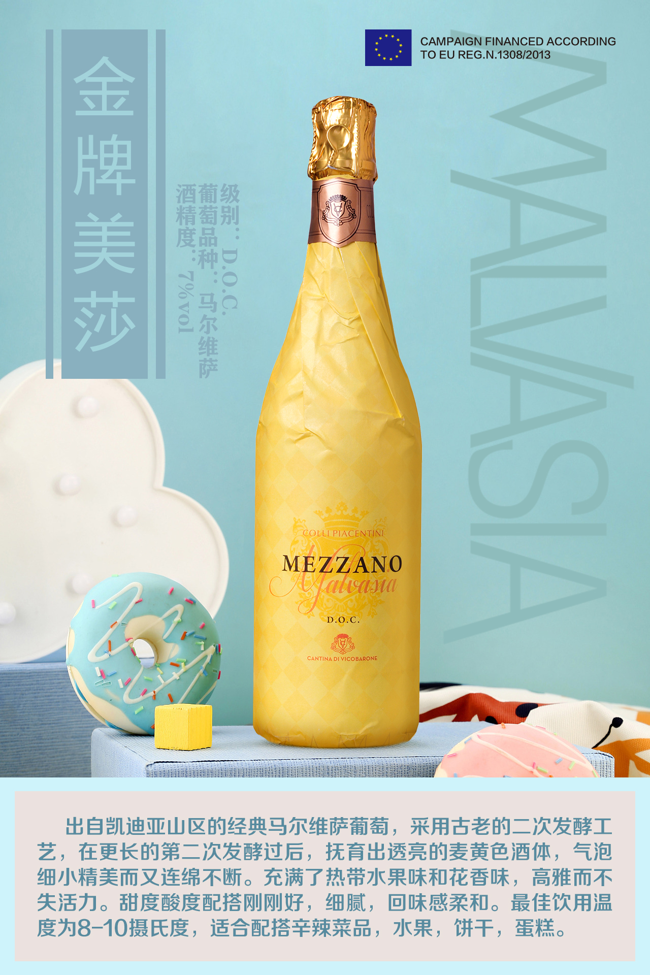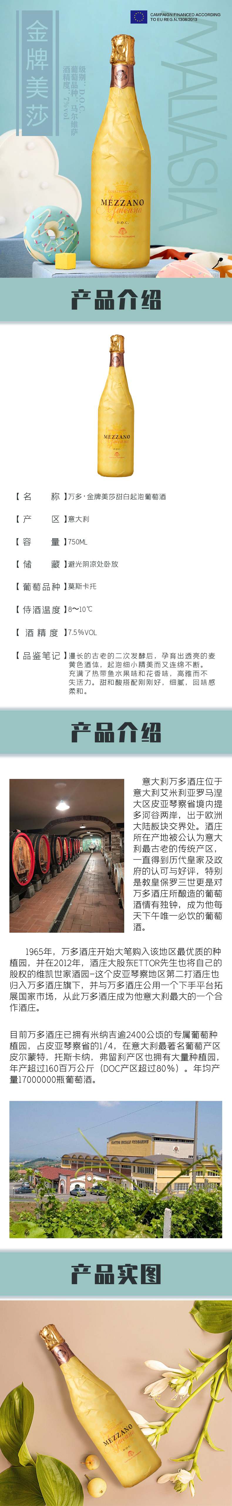 【高颜值 高品质】金牌美莎F甜起泡白葡萄酒 750ml/瓶 意大利原装原瓶进口