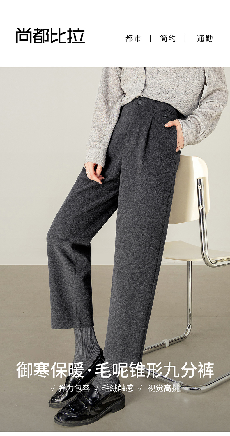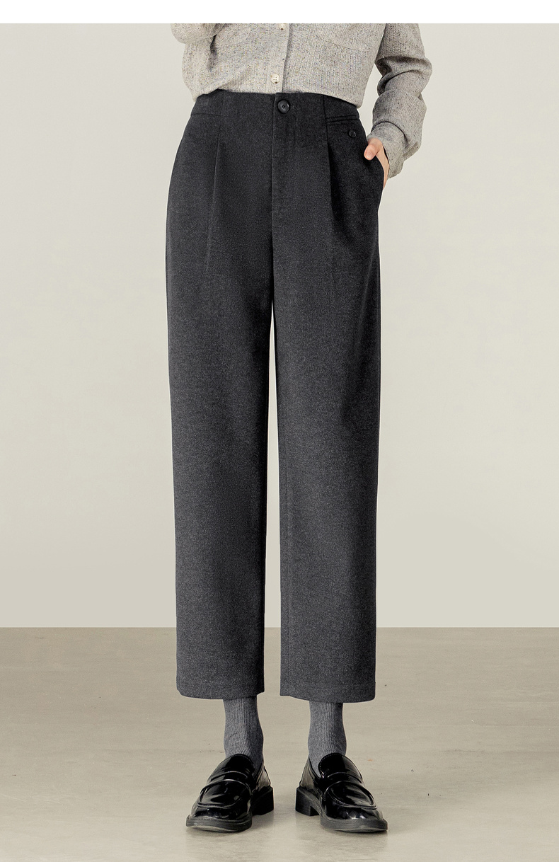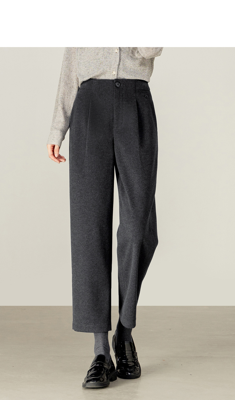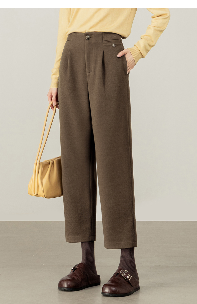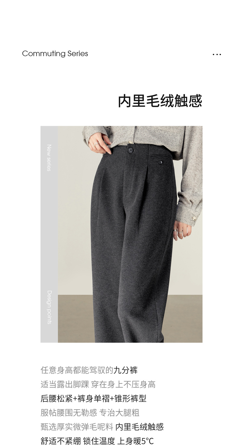 【内购】【御寒保暖】通勤高腰立体单褶显瘦显腿长微弹厚毛呢锥形九分裤-153KL0167