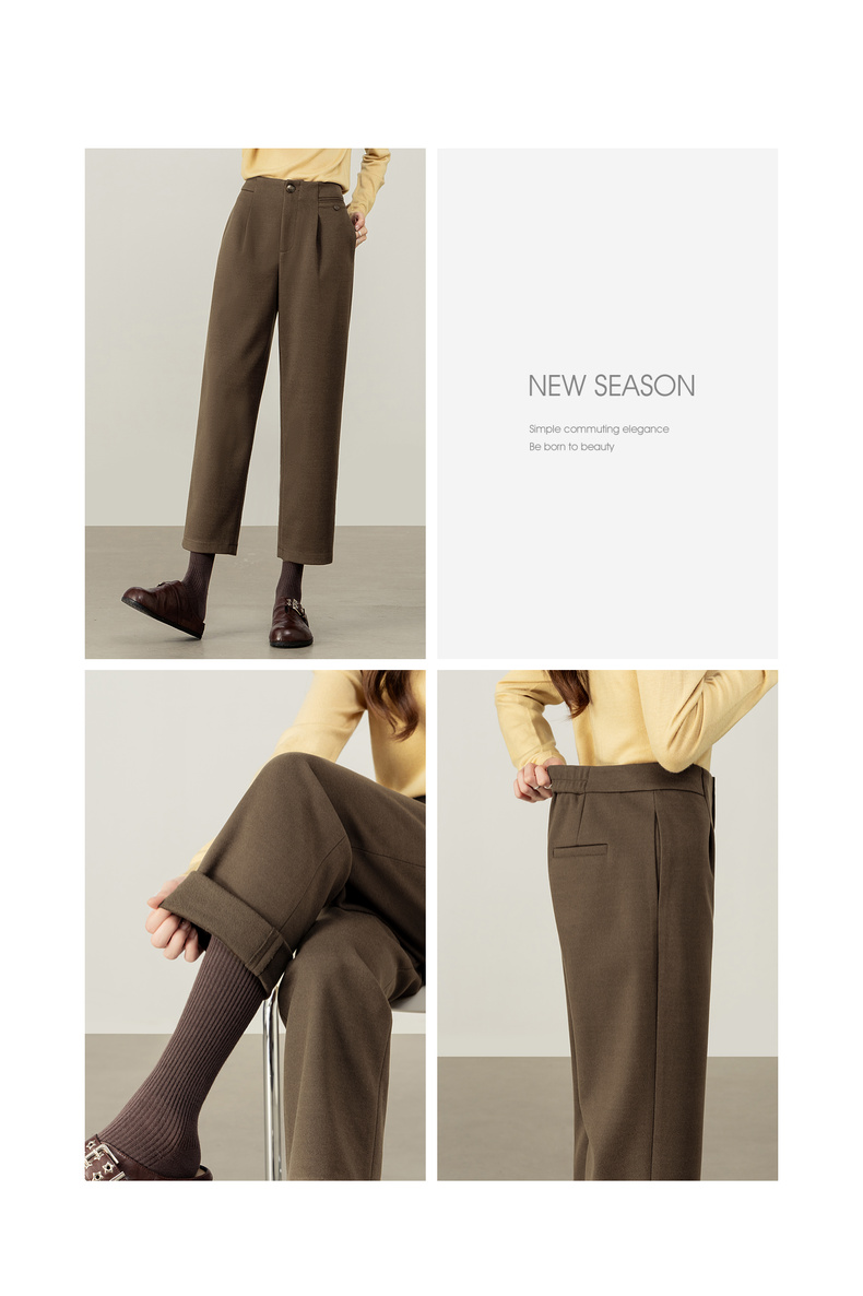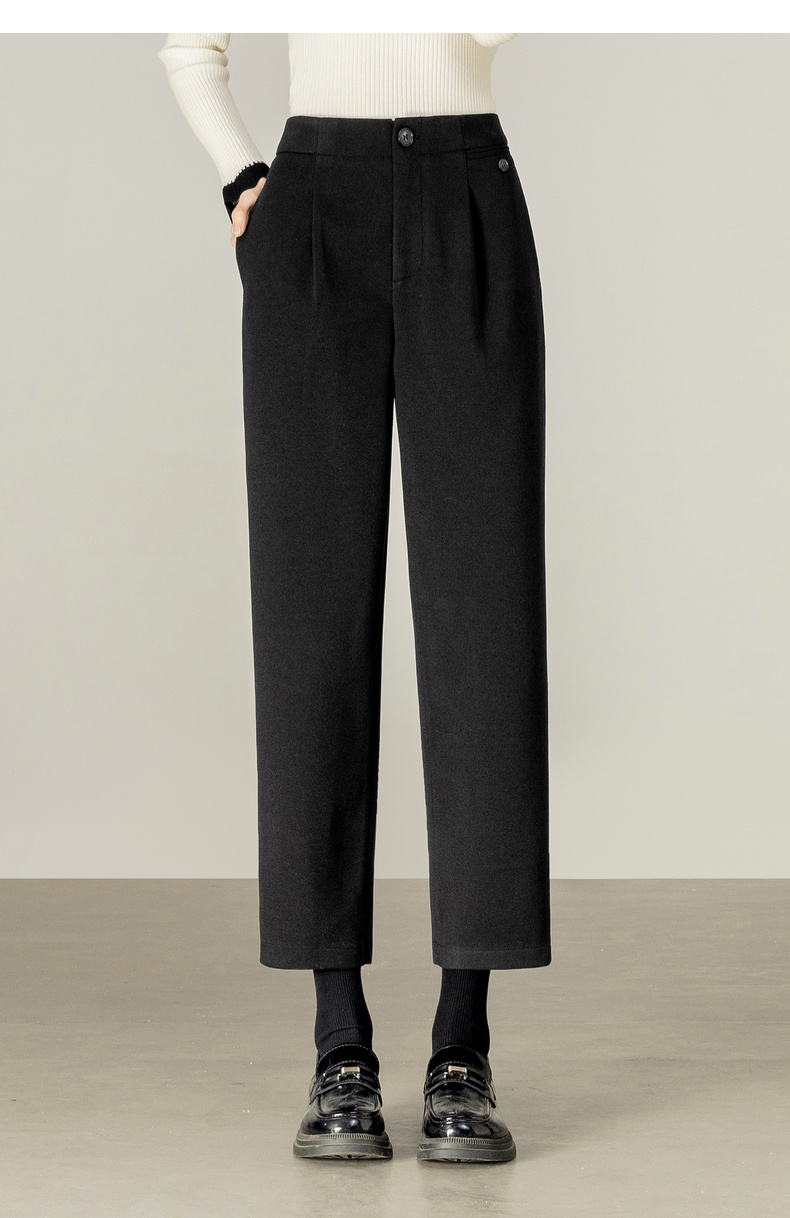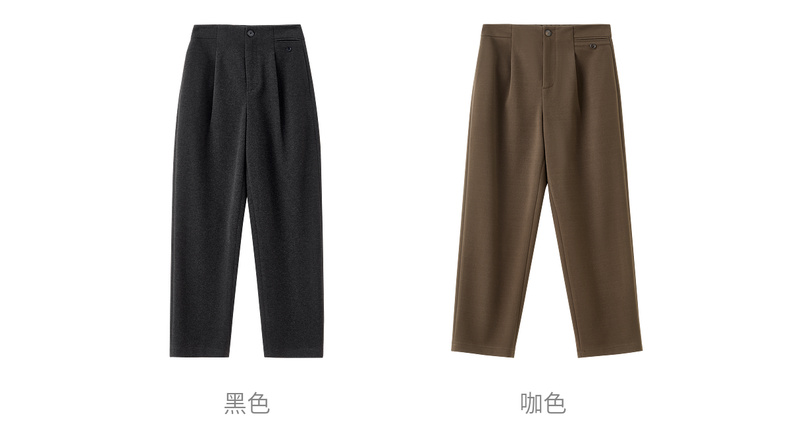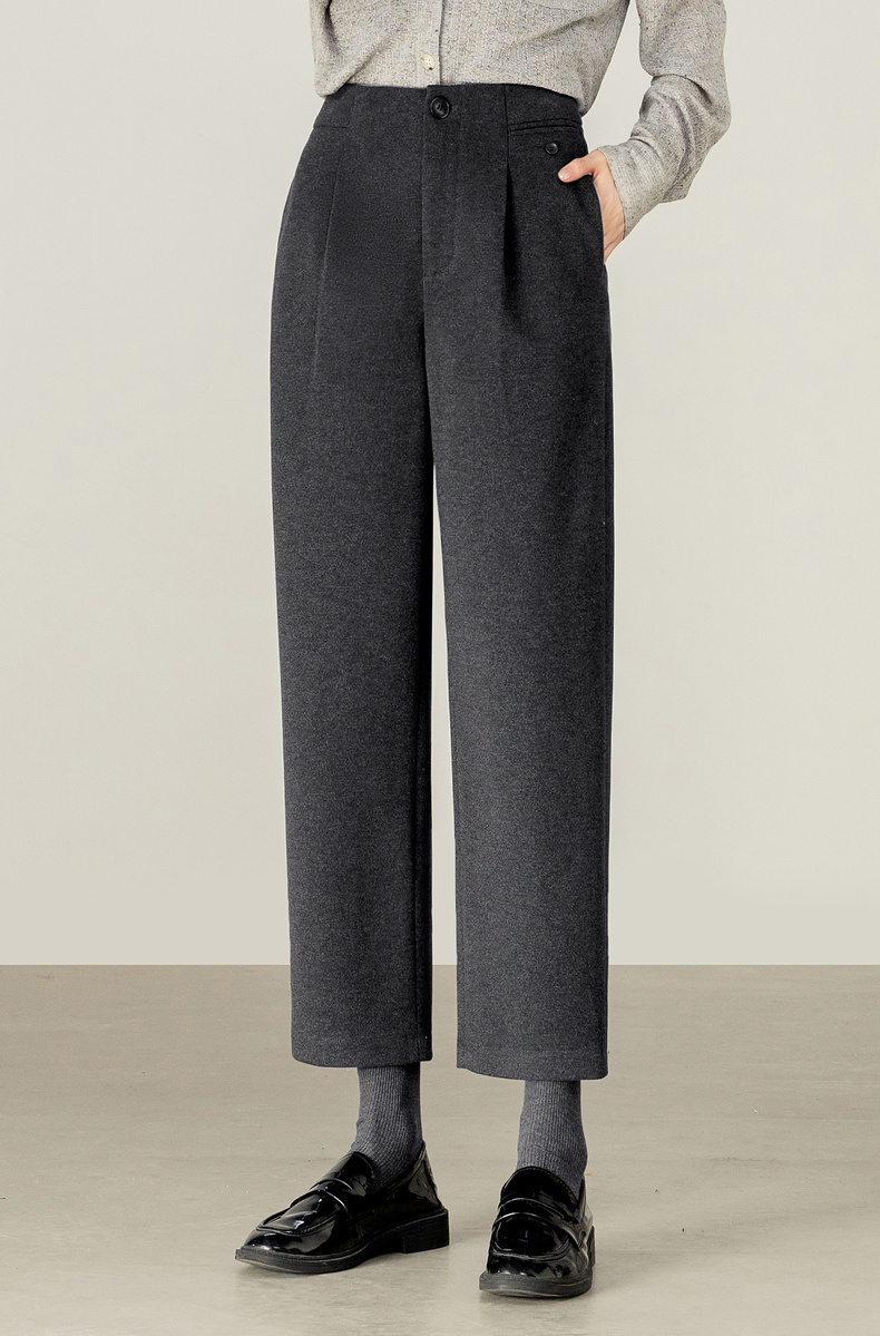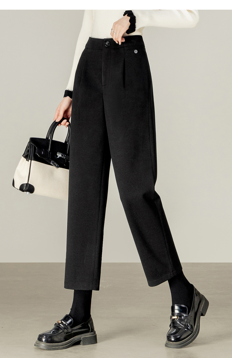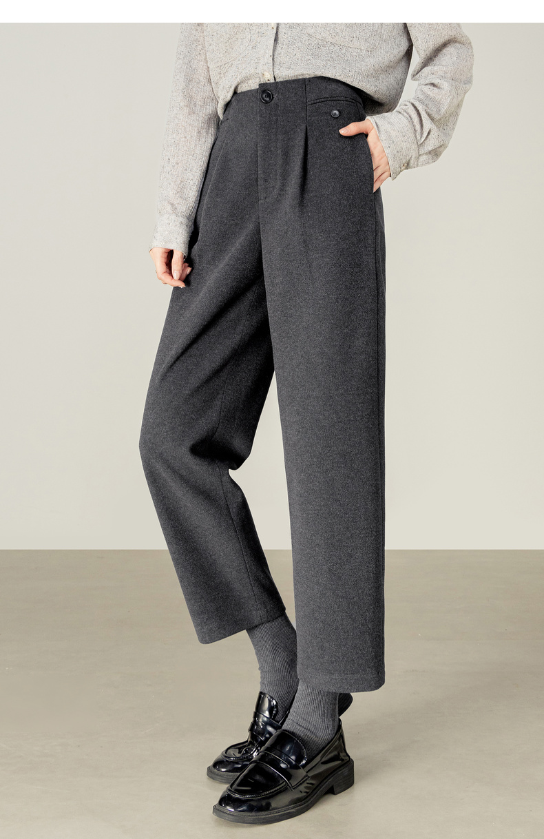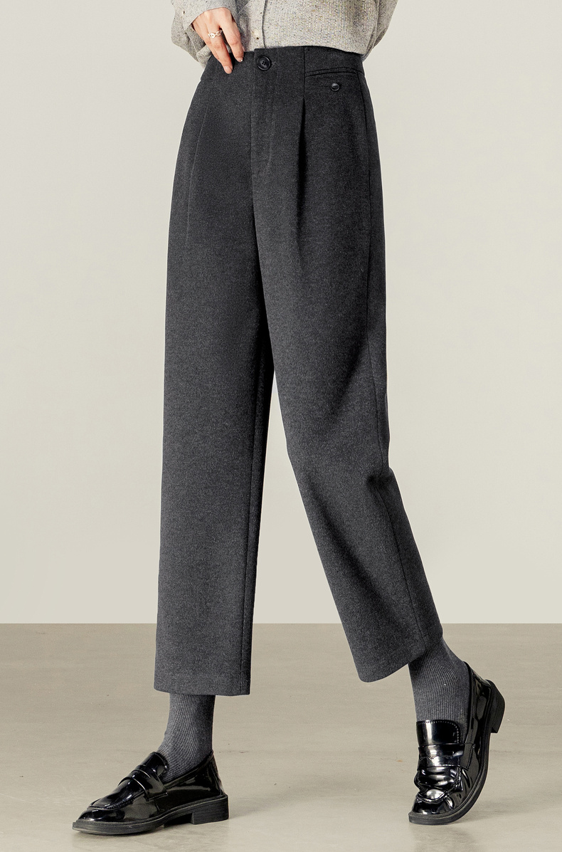 【内购】【御寒保暖】通勤高腰立体单褶显瘦显腿长微弹厚毛呢锥形九分裤-153KL0167