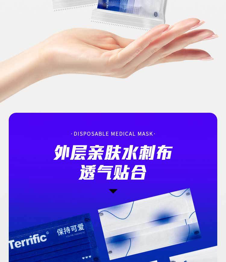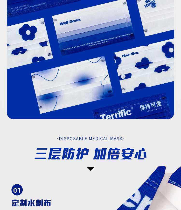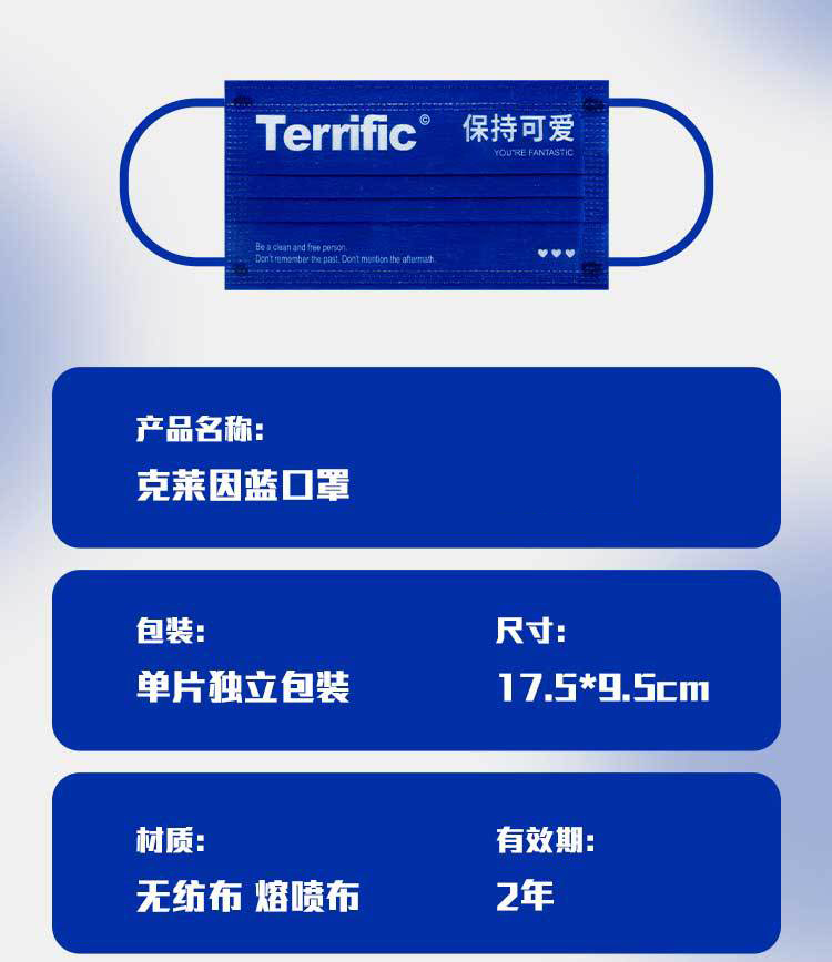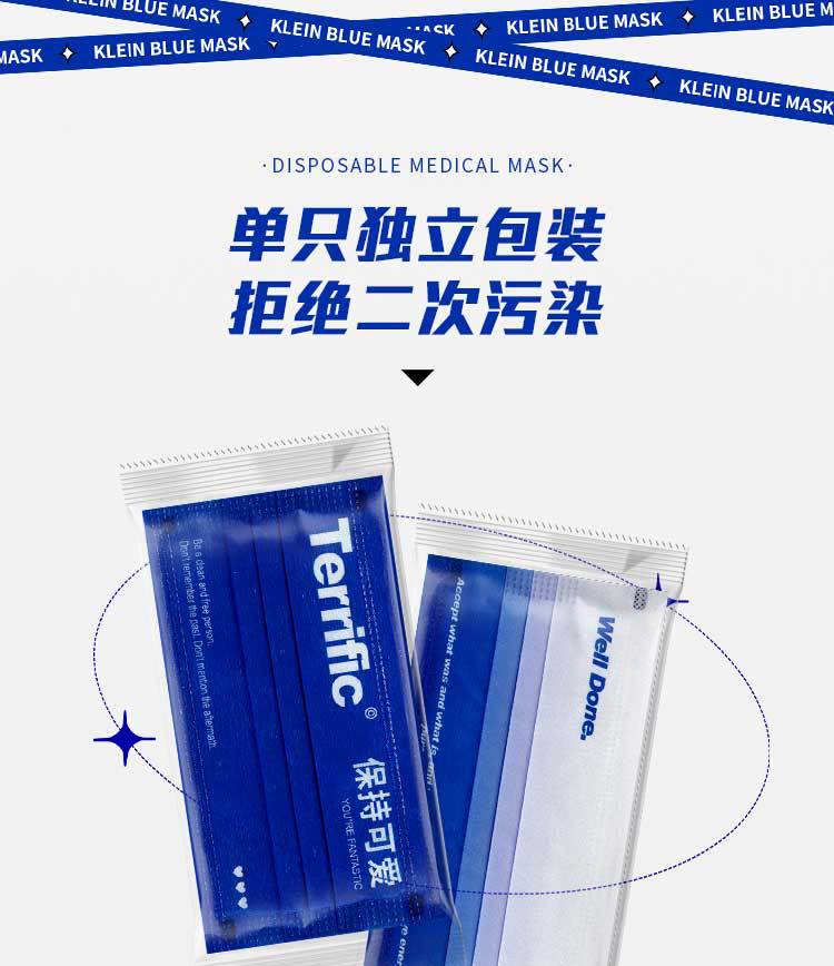 「新潮系列口罩」克莱因蓝口罩 ins简约风 潮流时尚 三层防护 久戴不勒 熔喷布过滤 透气贴合 独立片装 干净卫生 款式随机发