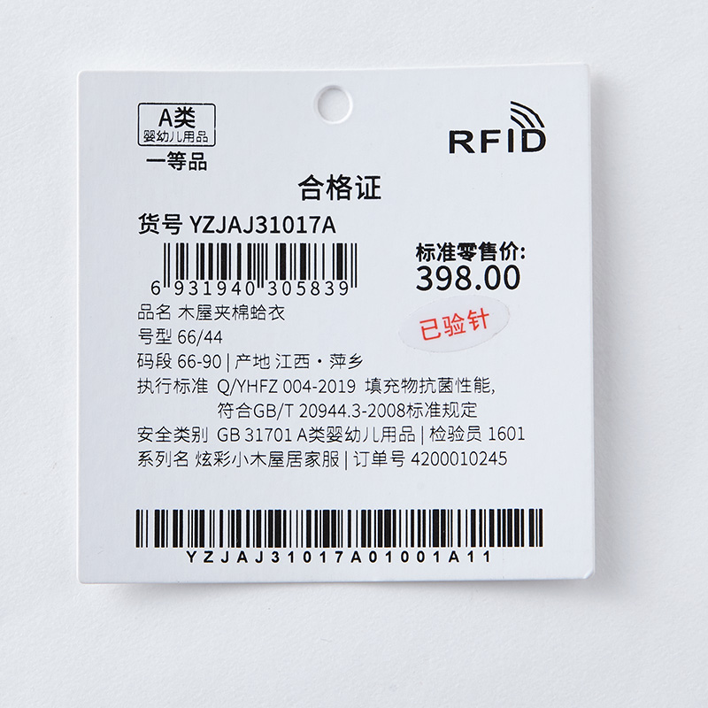 英氏男女婴儿木屋夹棉蛤衣21秋冬连体衣保暖YZJAJ31017A