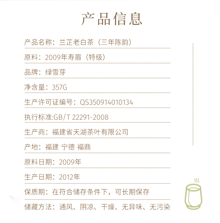 白茶 | 绿雪芽2012年兰芷老白茶357G