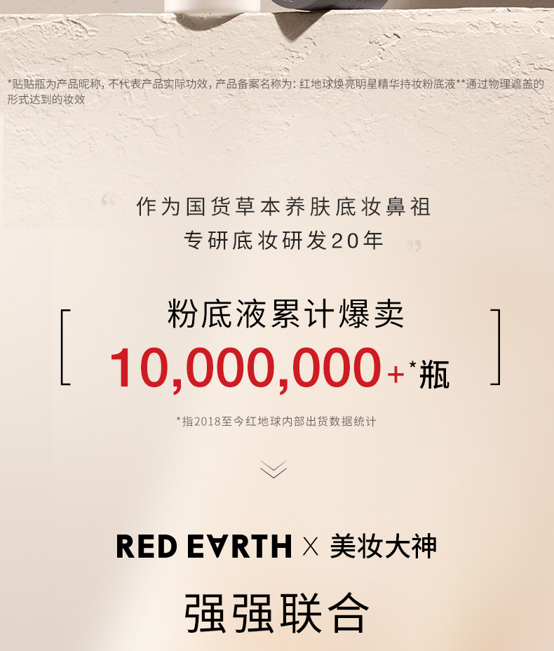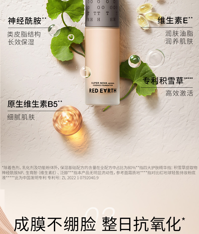 REDEARTH红地球 贴贴瓶粉底液防水防汗不脱妆保湿遮瑕持久奶油肌