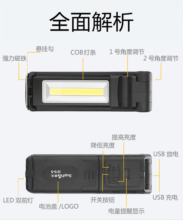 SUPERFIRE神火G15工作灯超亮强光照明led汽修充电汽车检查手电筒带磁铁维修灯