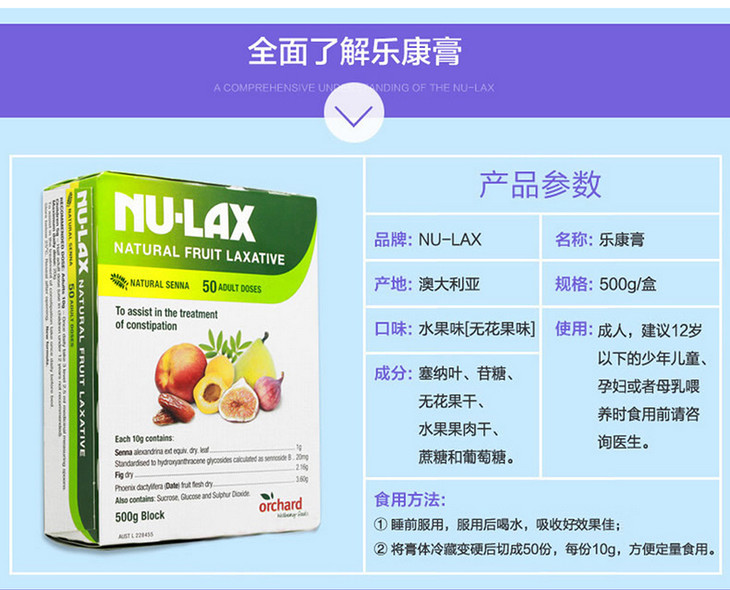 【保税仓】澳大利亚NU-LAX乐康膏 果蔬润肠养颜 500g 商品图0