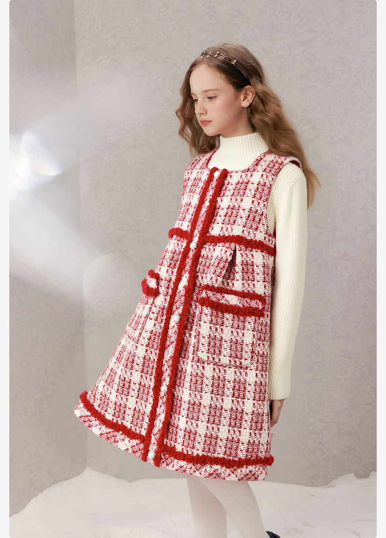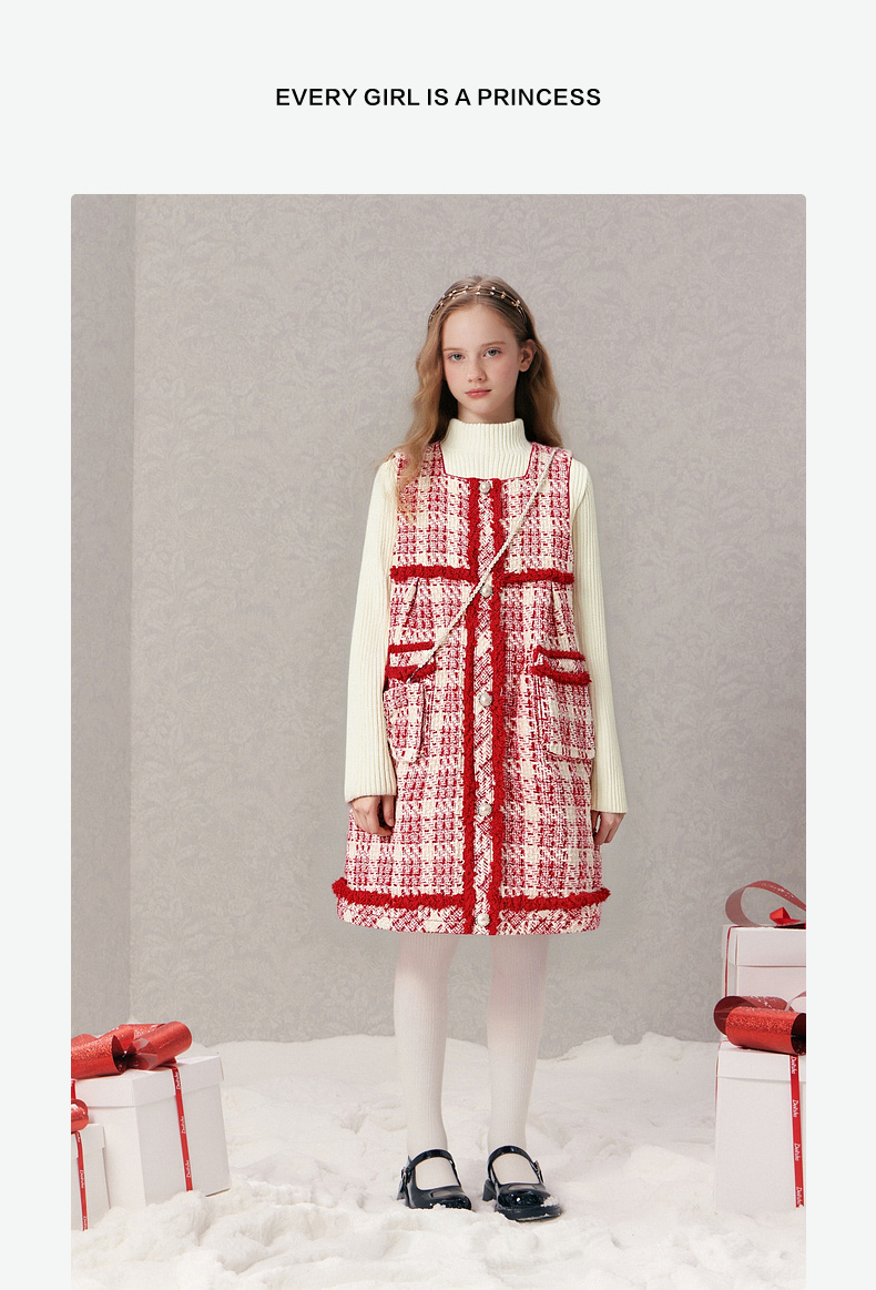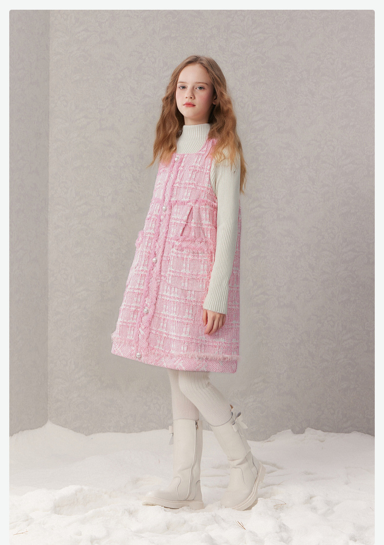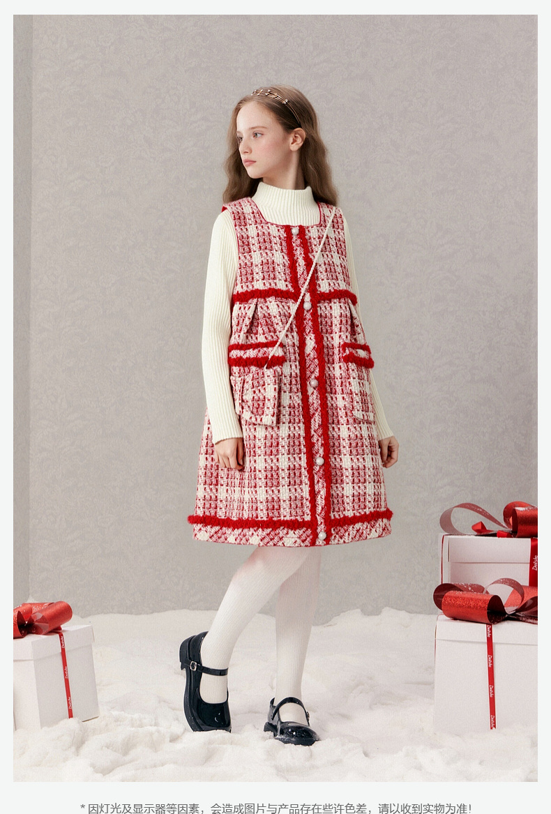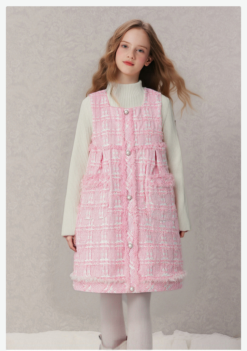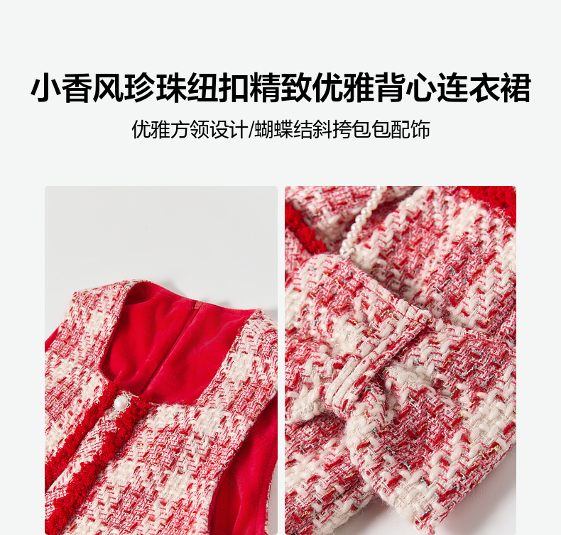 笛莎Deesha 童装女童连衣裙2025冬新款小香风珍珠纽扣精致优雅背心连衣裙