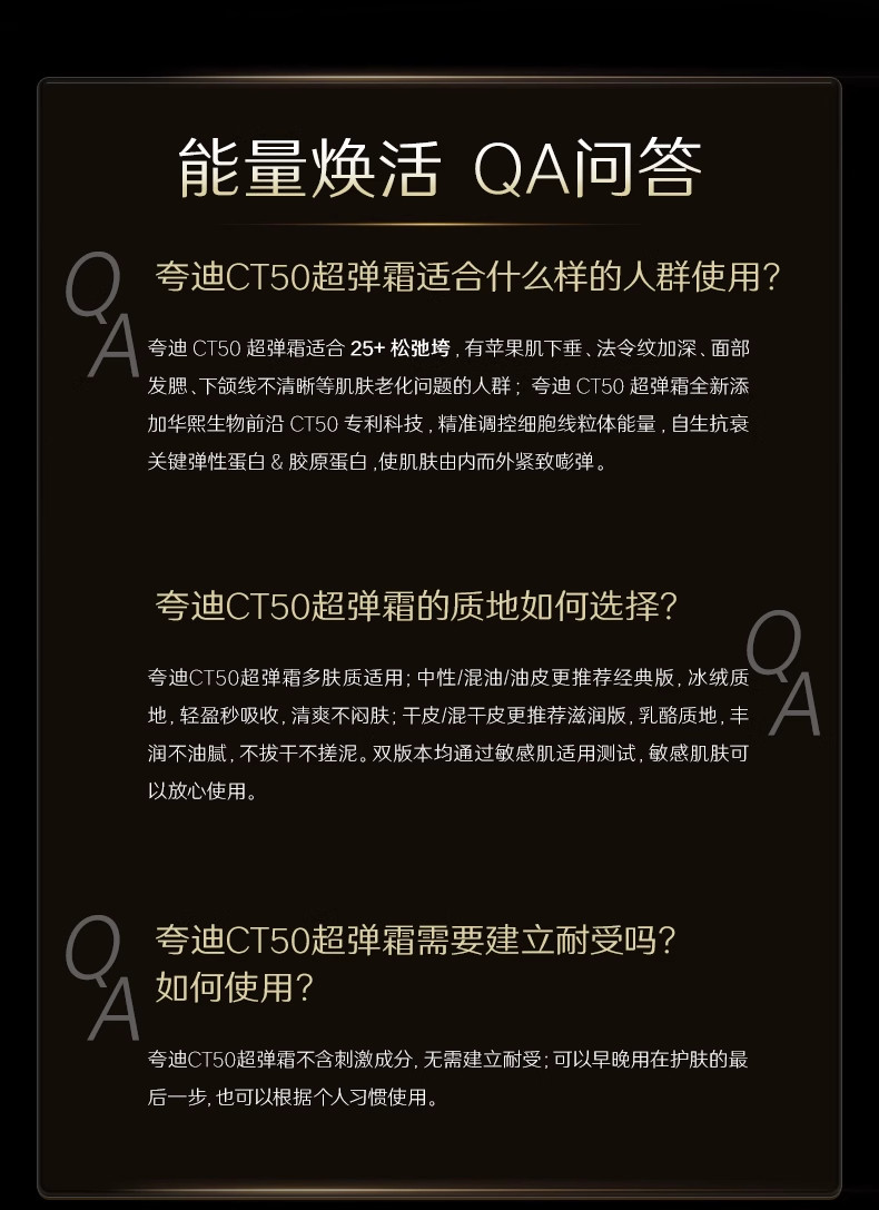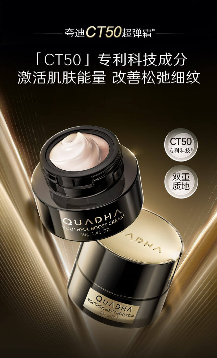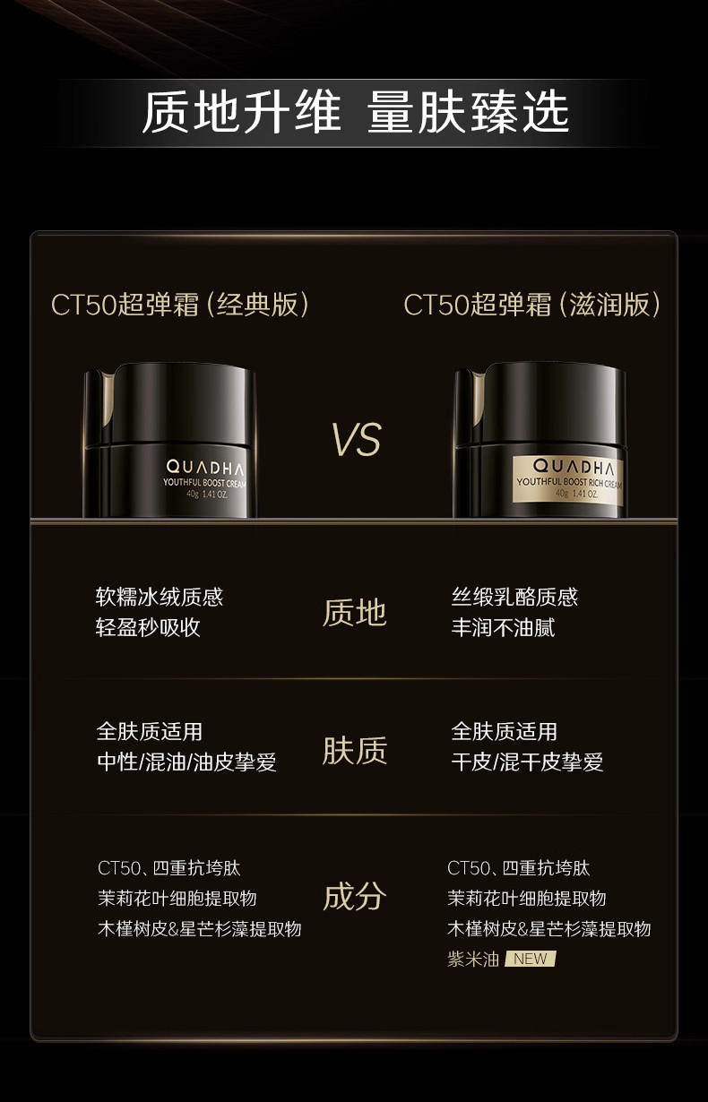 夸迪CT50超弹霜补水黑金轻龄面霜 动能支撑轻龄面霜紧致抗皱护肤品保湿补水精华华熙生物