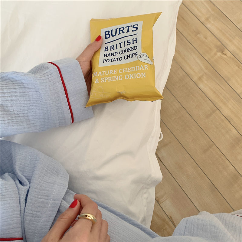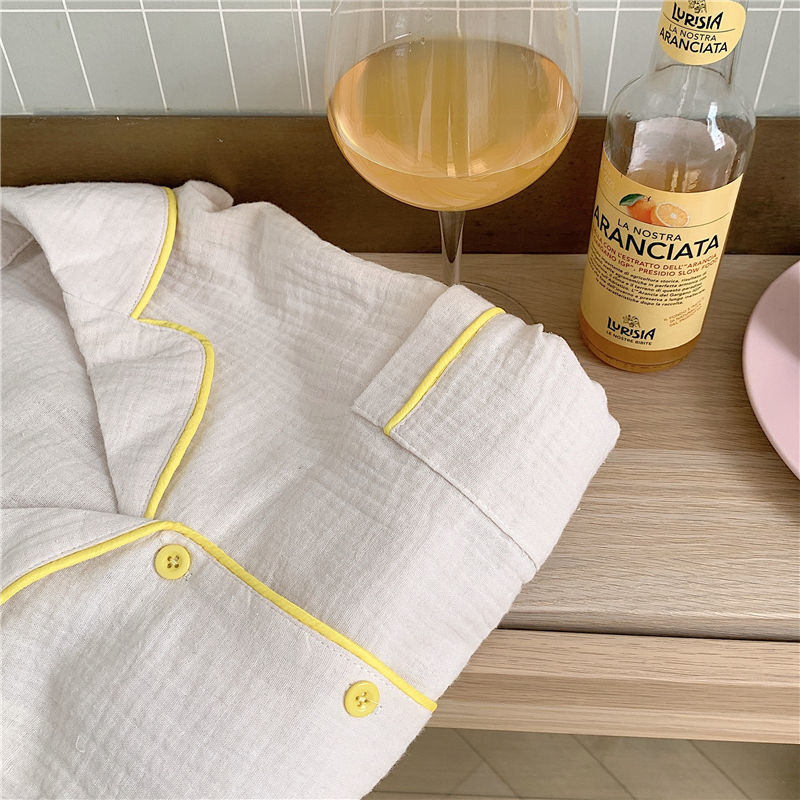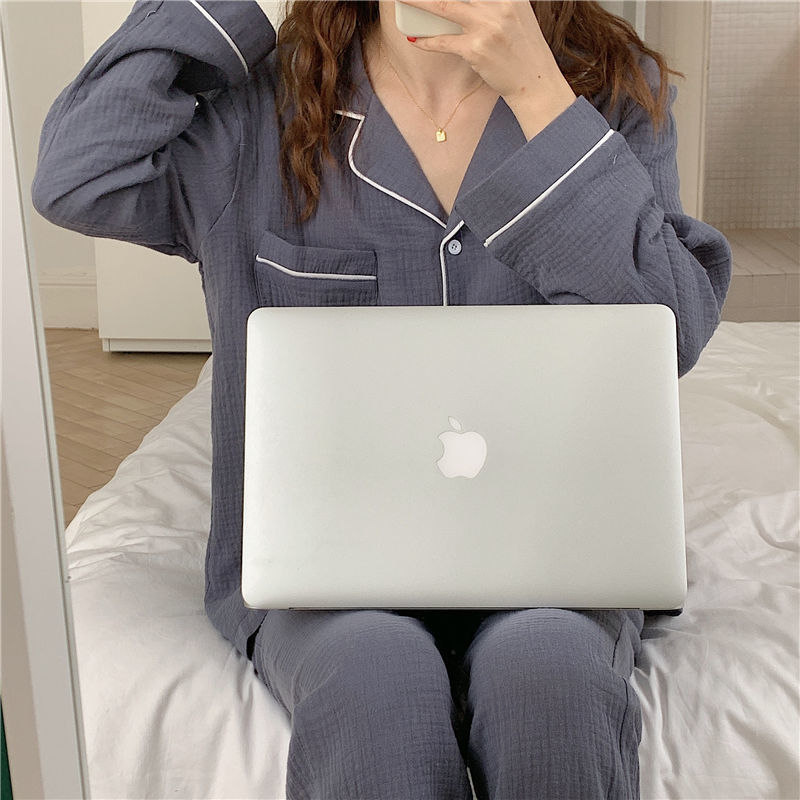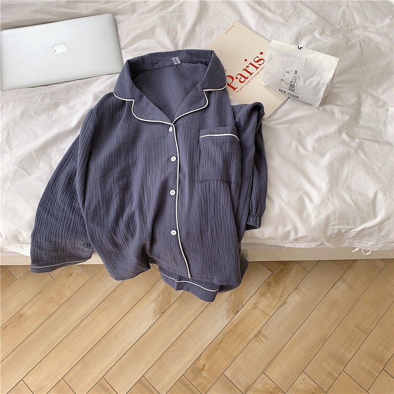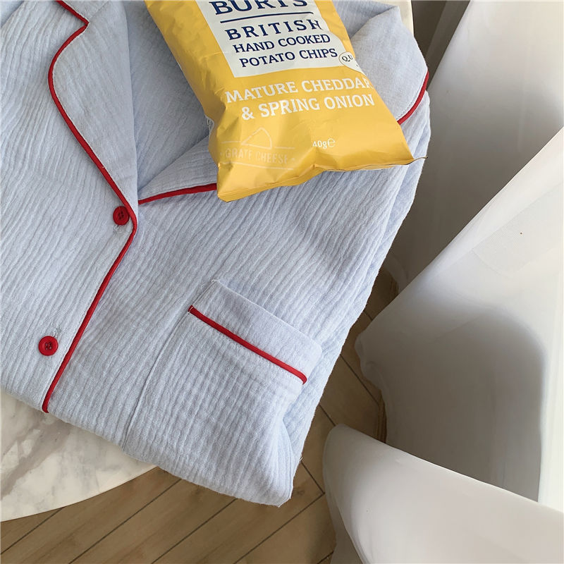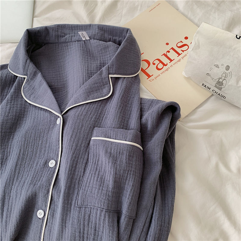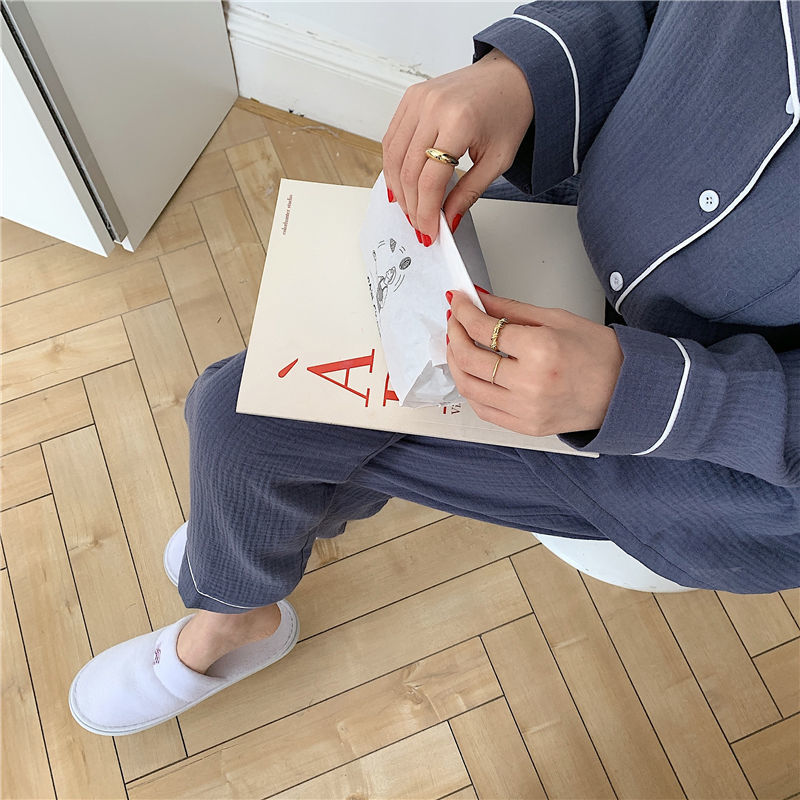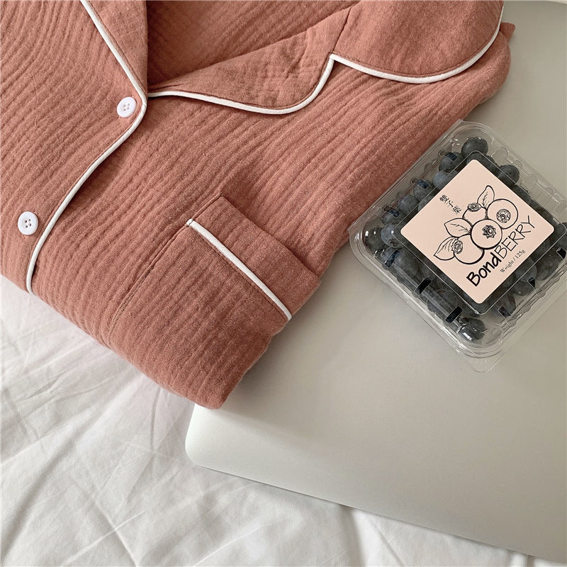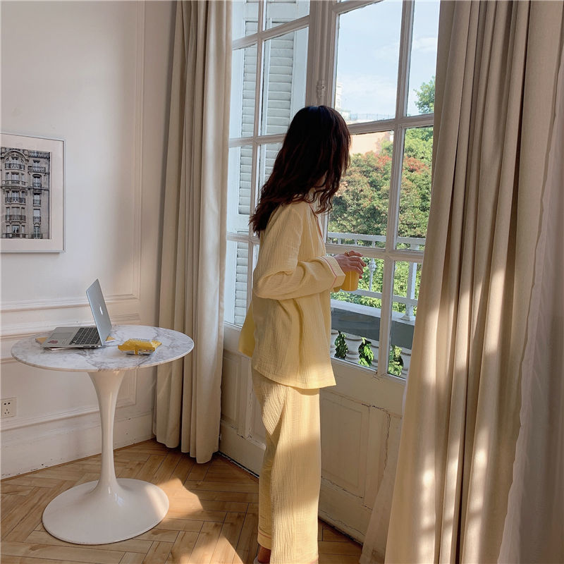 纯棉纱布长袖睡衣女秋季套装学生ins风宽松纯色家居服长裤两件套