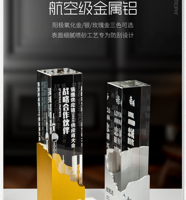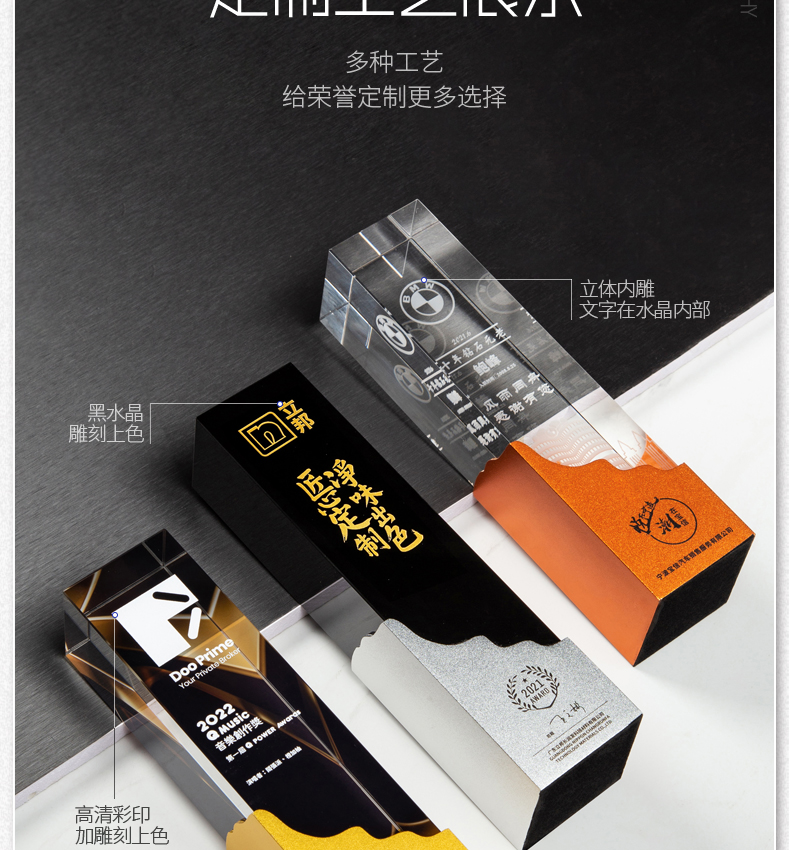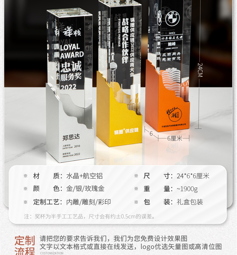 金属水晶奖杯定制定做创意奖牌荣誉牌公司授权牌免费刻字纪念品