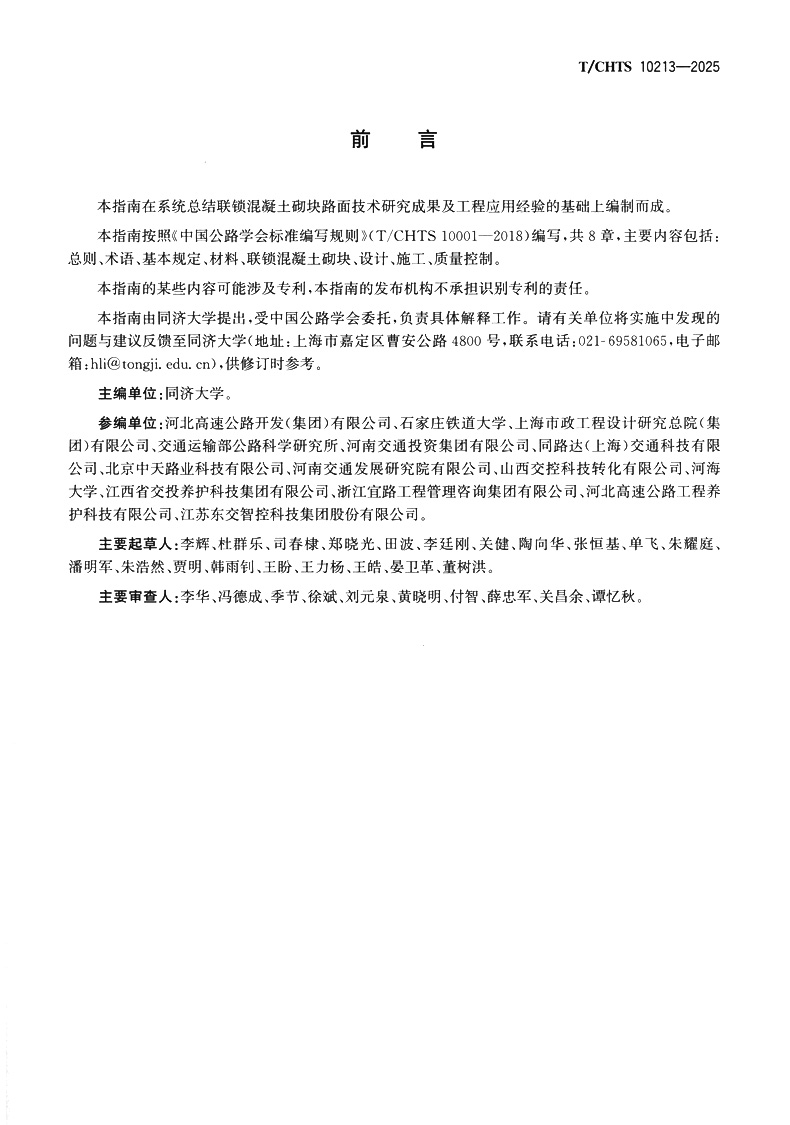 书名:联锁混凝土砌块路面技术指南(T/CHTS 10213—2025)