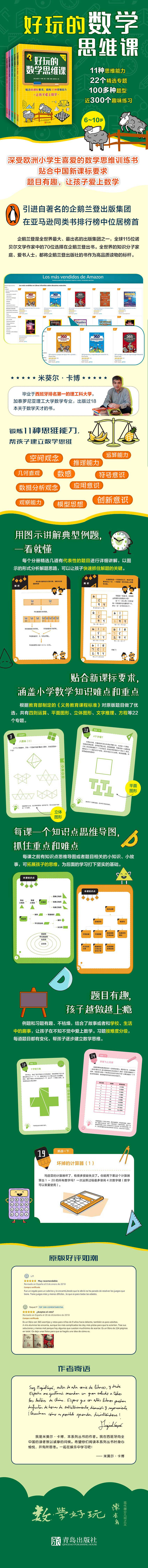 每个分册精选几道有代表性的题目进行详细讲解,以图示的形式分析解题思路,可以让孩子快速抓住解题的关键,建立数学思维。例题之后还准备了多道趣味习题,按难度分级,每道题目都有变化,进一步拓展思路,锻炼孩子的数学思维。